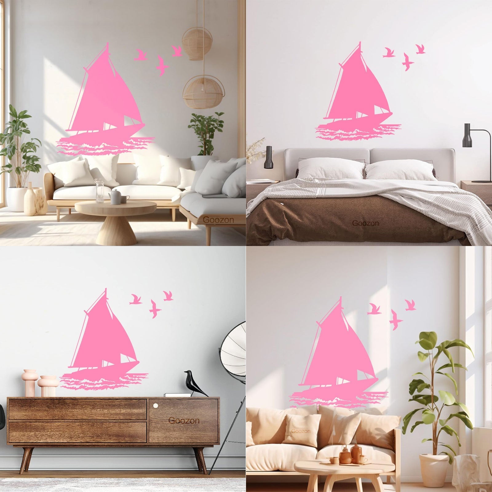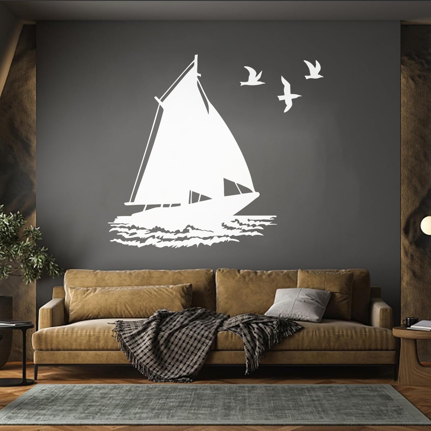 Fine Carving Stickers Boat Ship Birds Ocean Marine Beach House Do Not Damage The Wall Surface