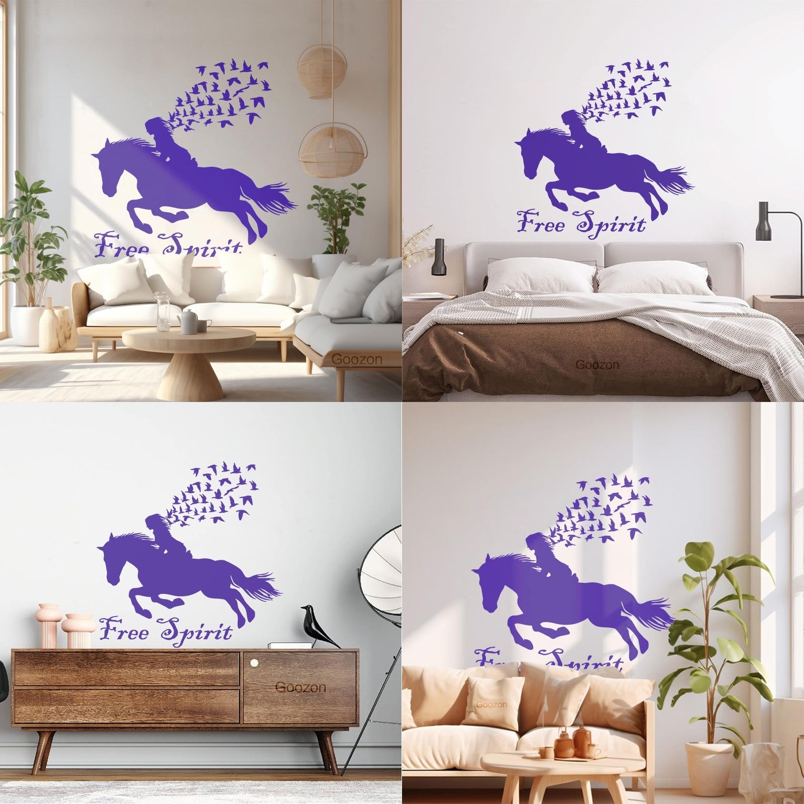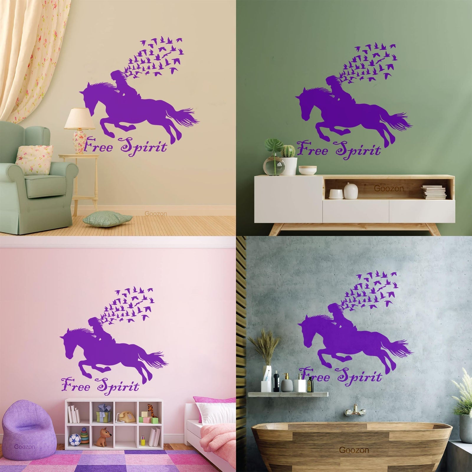Vinyl Wall Stickers Lettering Free Spirit Girl Horse Rider Birds Patterns It Won'T Fall Off