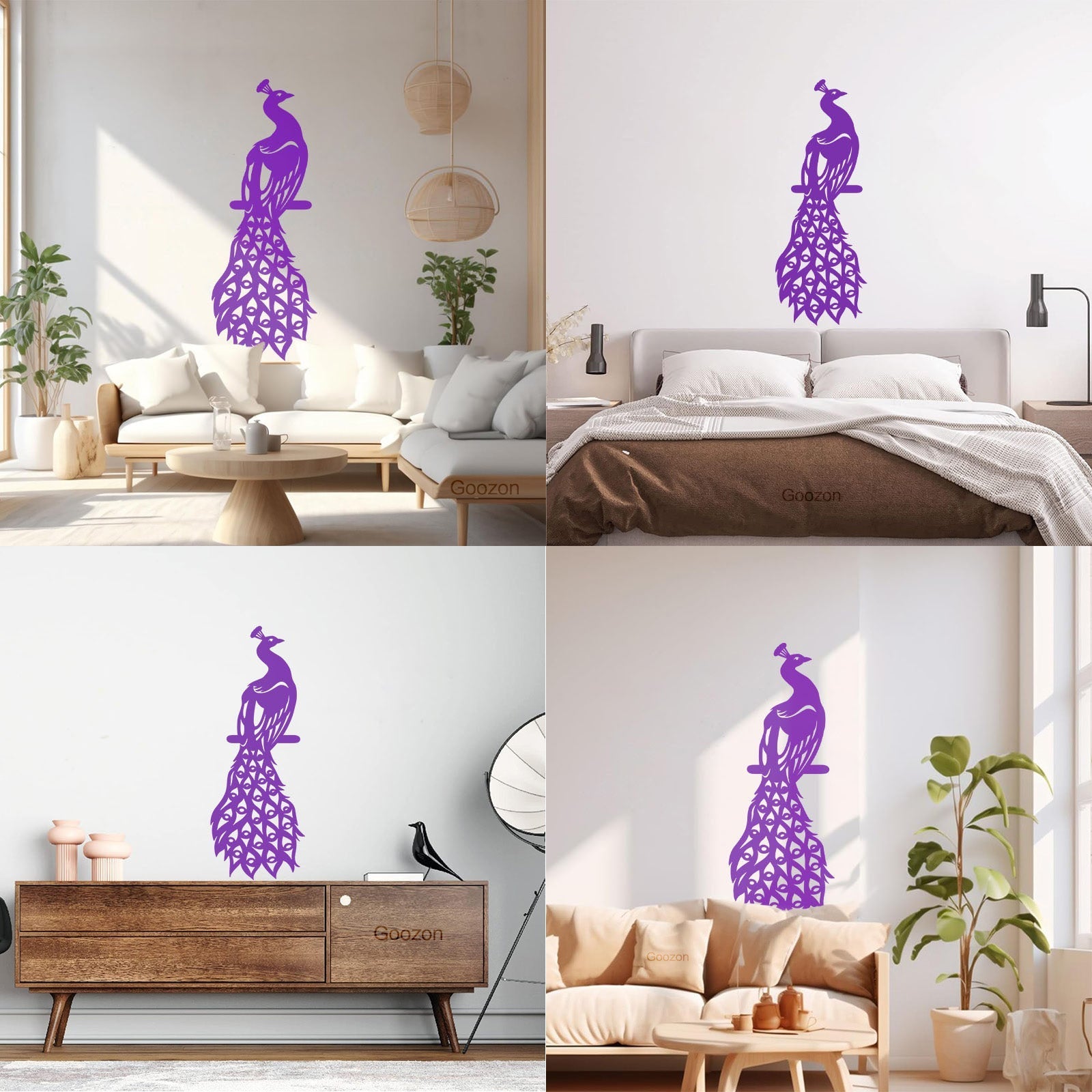 Wall Decals Pvc Peacock Fairy Birds Beautiful Feathers Removable Without Leaving Glue
