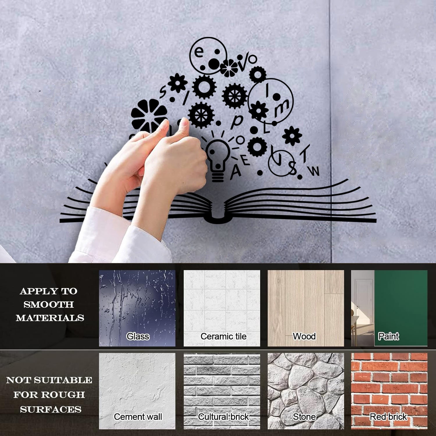 Wall Decals School Brain Science Open Book Lamp Gears Physics Car Body Decoration