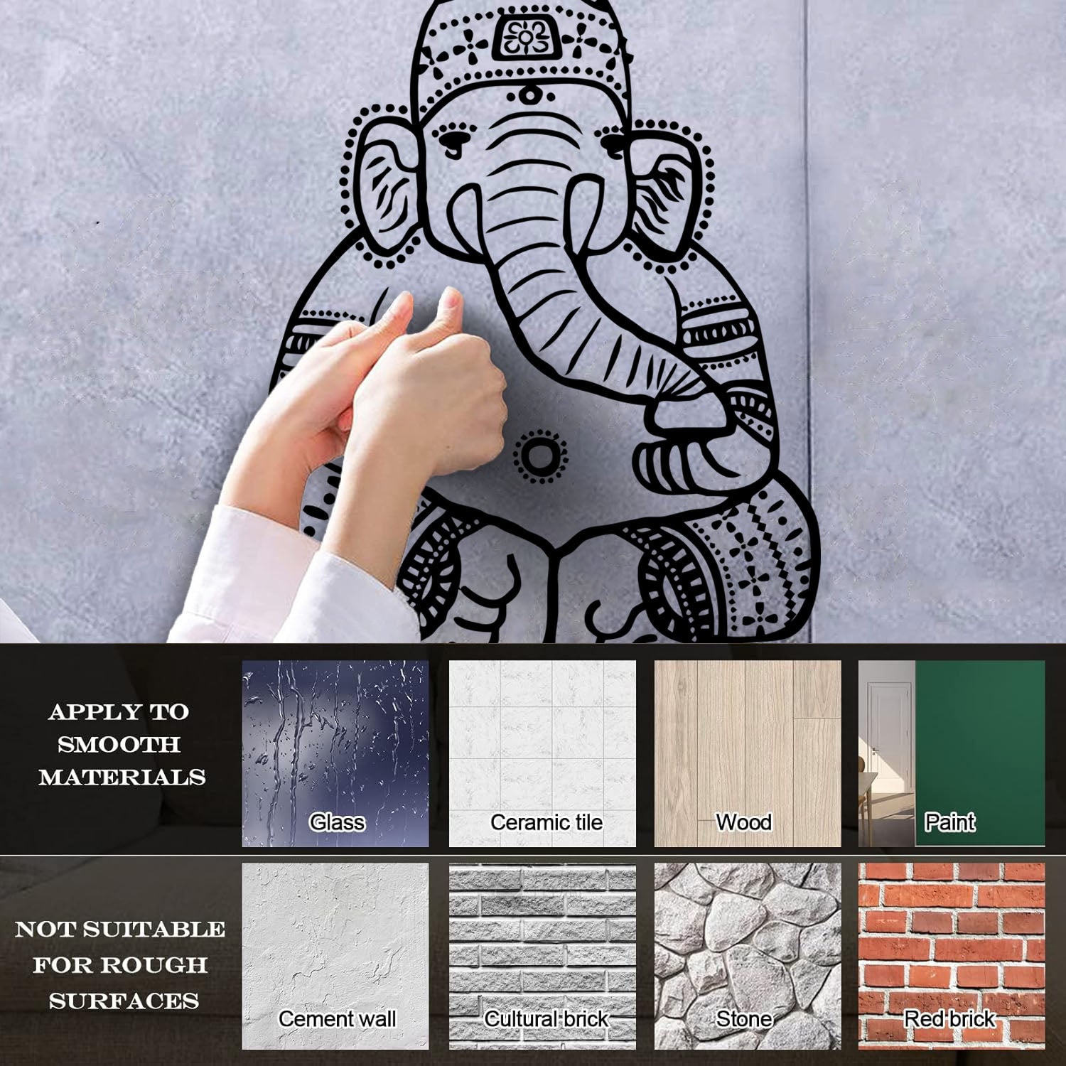 Wall Vinyl Sticker Decor Cartoon Ganesha God Elephant Hinduism India Kids Do Not Damage The Wall Surface