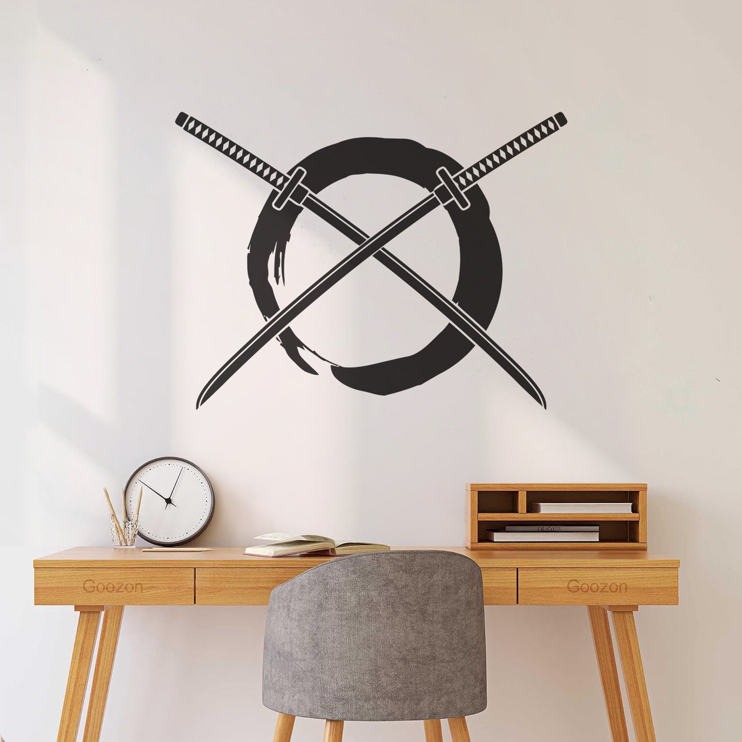 Fine Carving Stickers Enso Circle Samurai Katana Zen Japanese Glass Stickers
