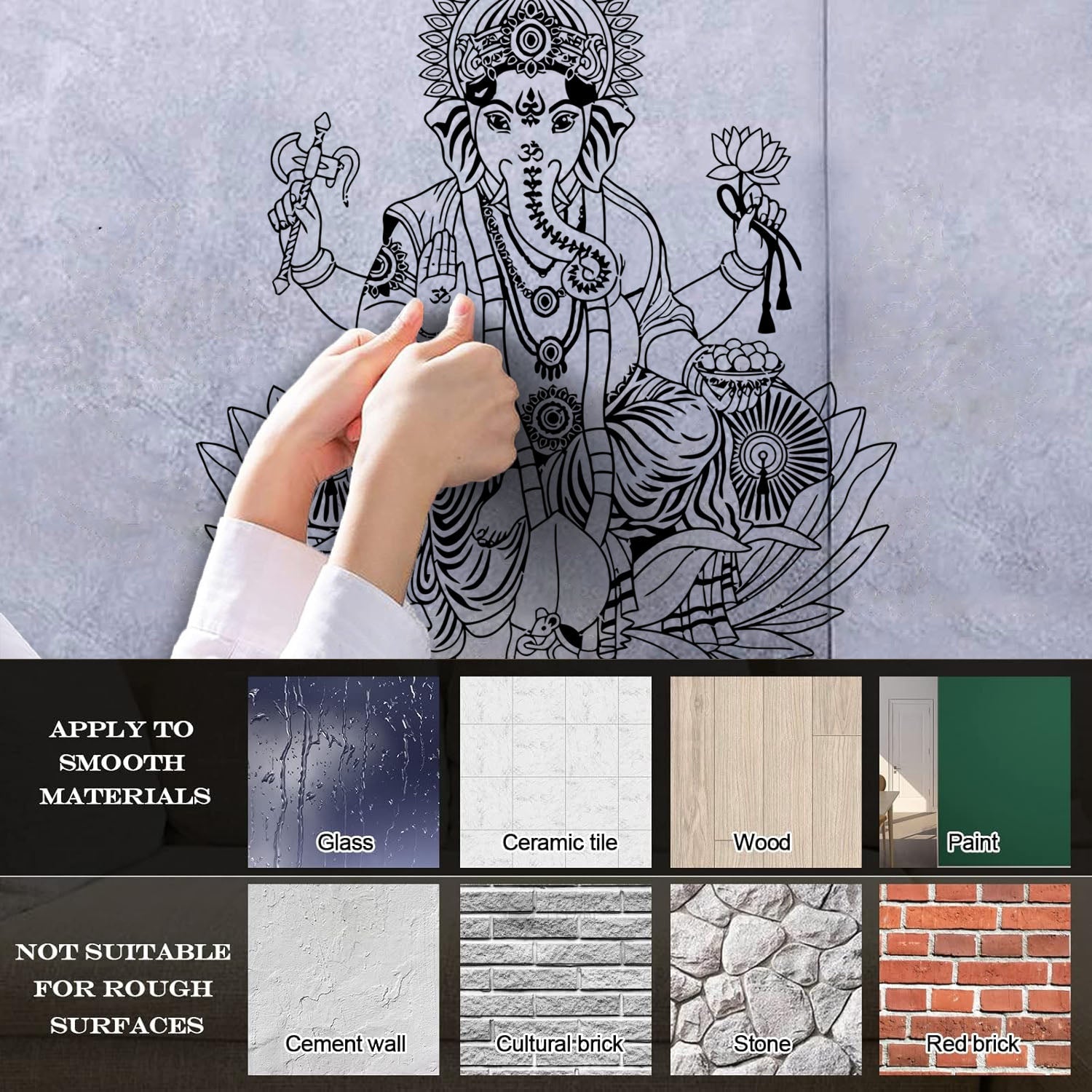 Fine Carving Stickers Ganesha Lotus Hinduism God Hindu India Personalized Customization
