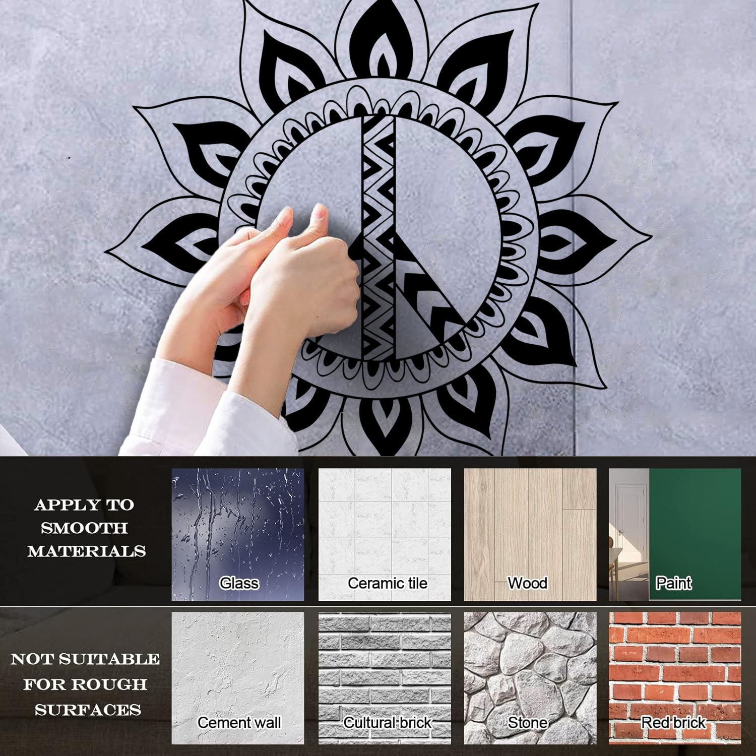 Lettering Stickers Mandala Hippie Peace Symbol Window Decals