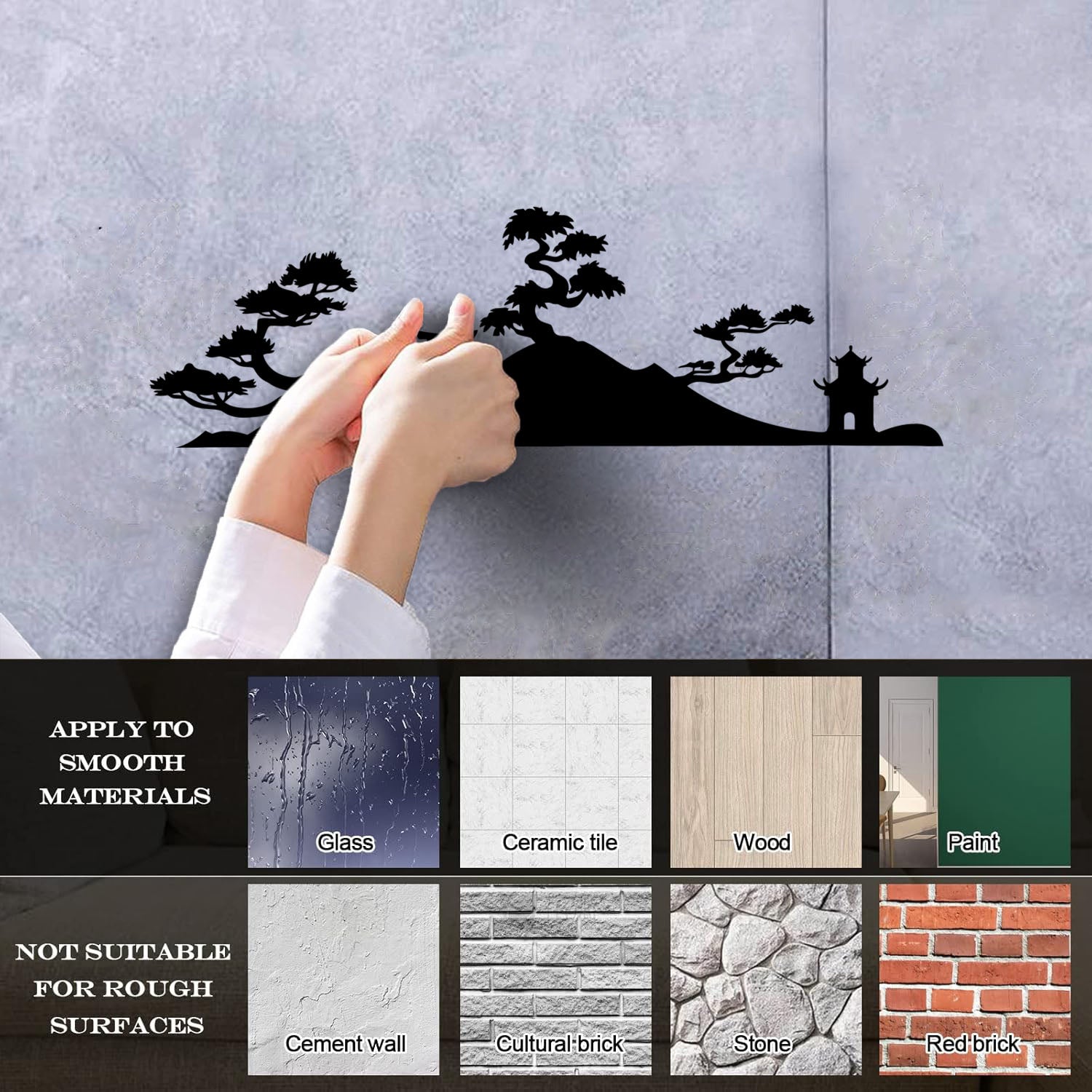 Gently press the decal area to secure it firmly to the wall.