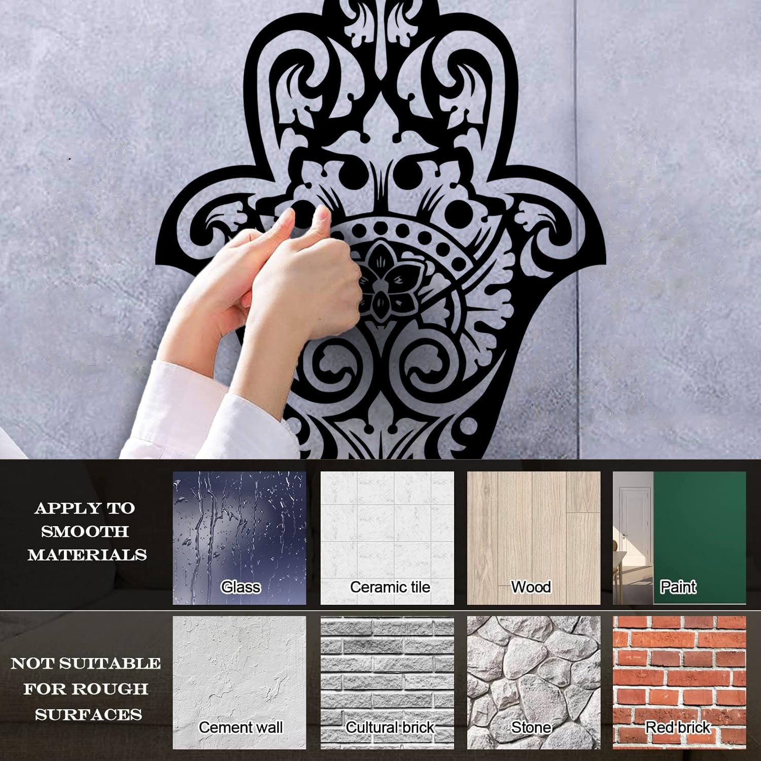 Gently press the decal area to secure it firmly to the wall.