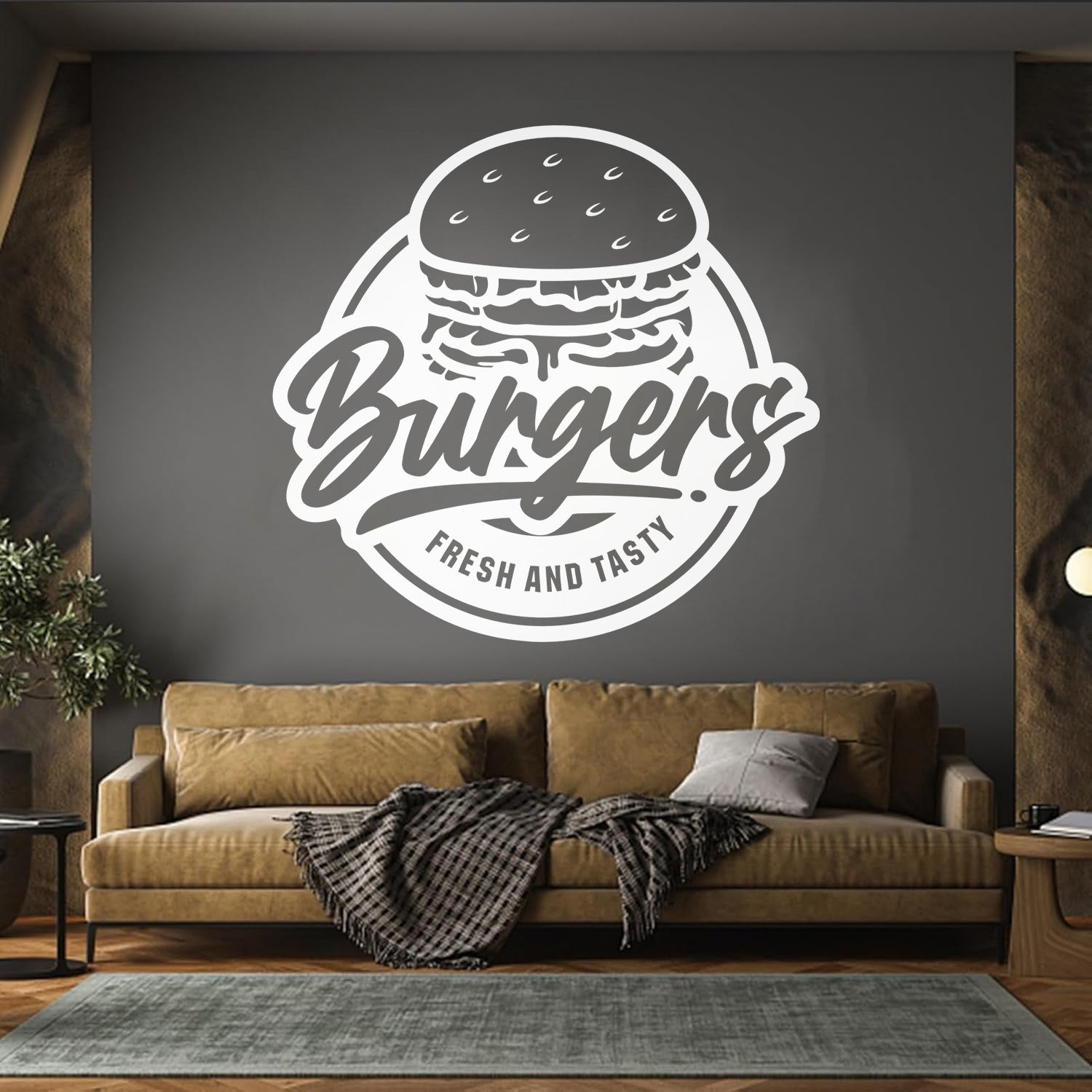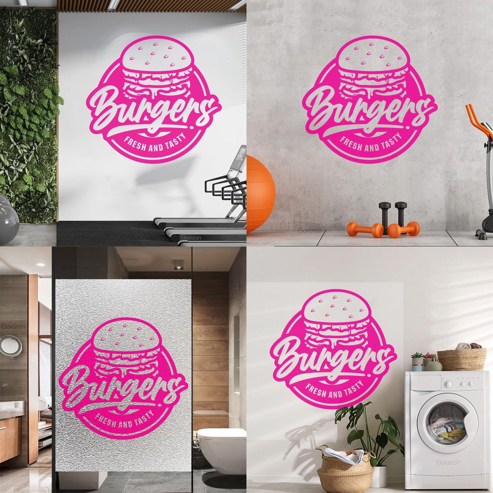 Fine Carving Stickers Fresh Tasty Burger Fast Food Cafe Restaurant Multi Color Selection