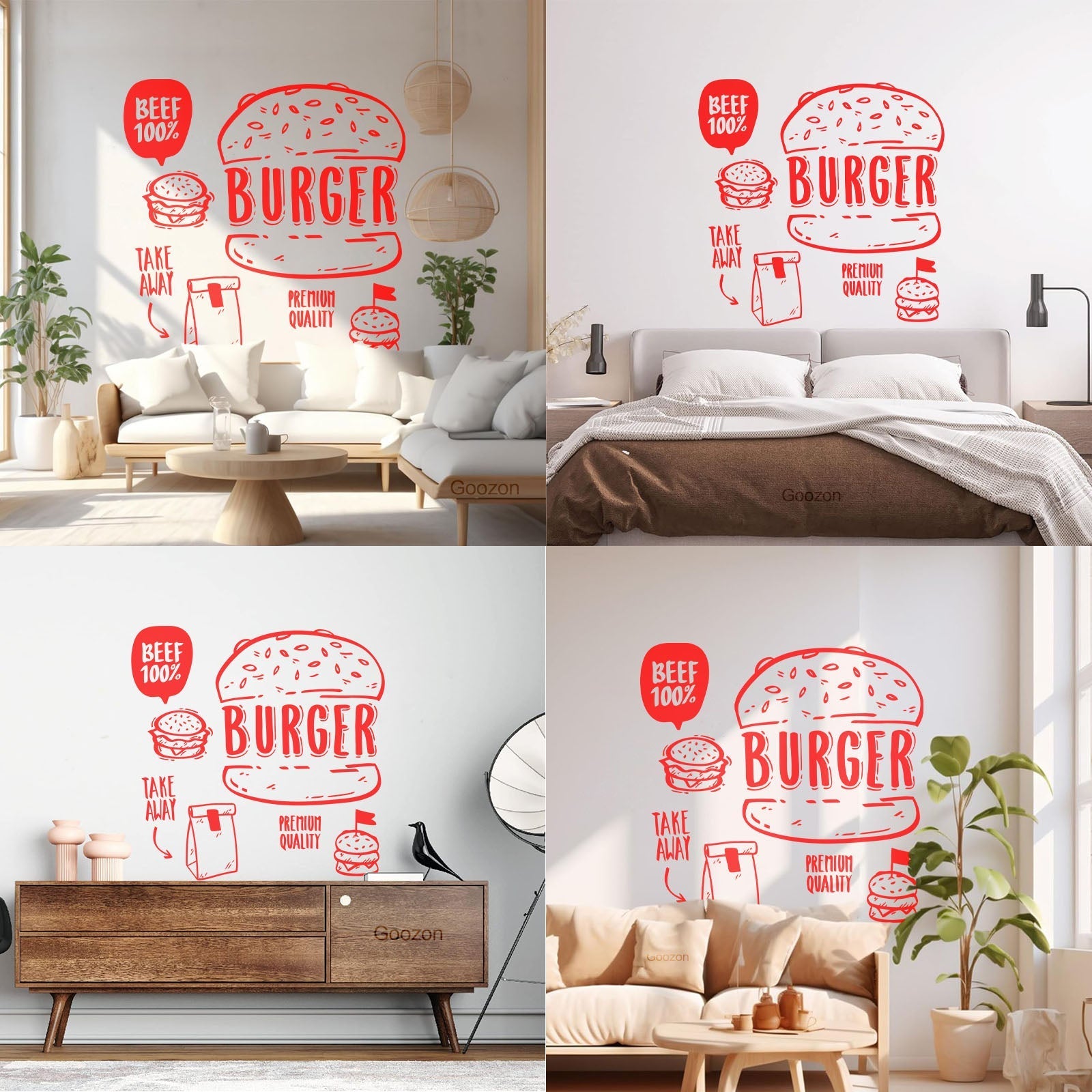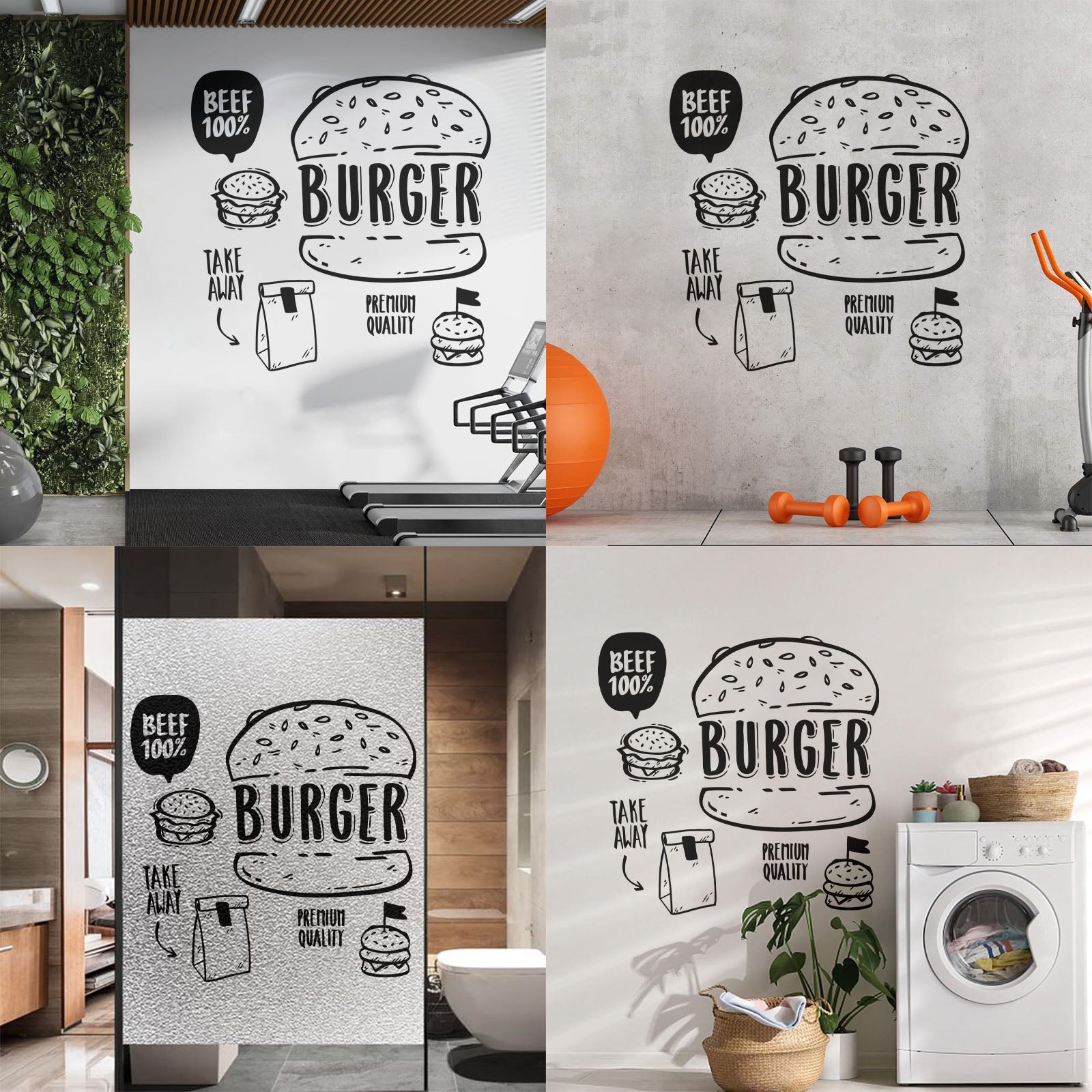 Hamburger Fast Food Premium Quality Beef Meat Wall Stickers Equipped With Transfer Film Kit