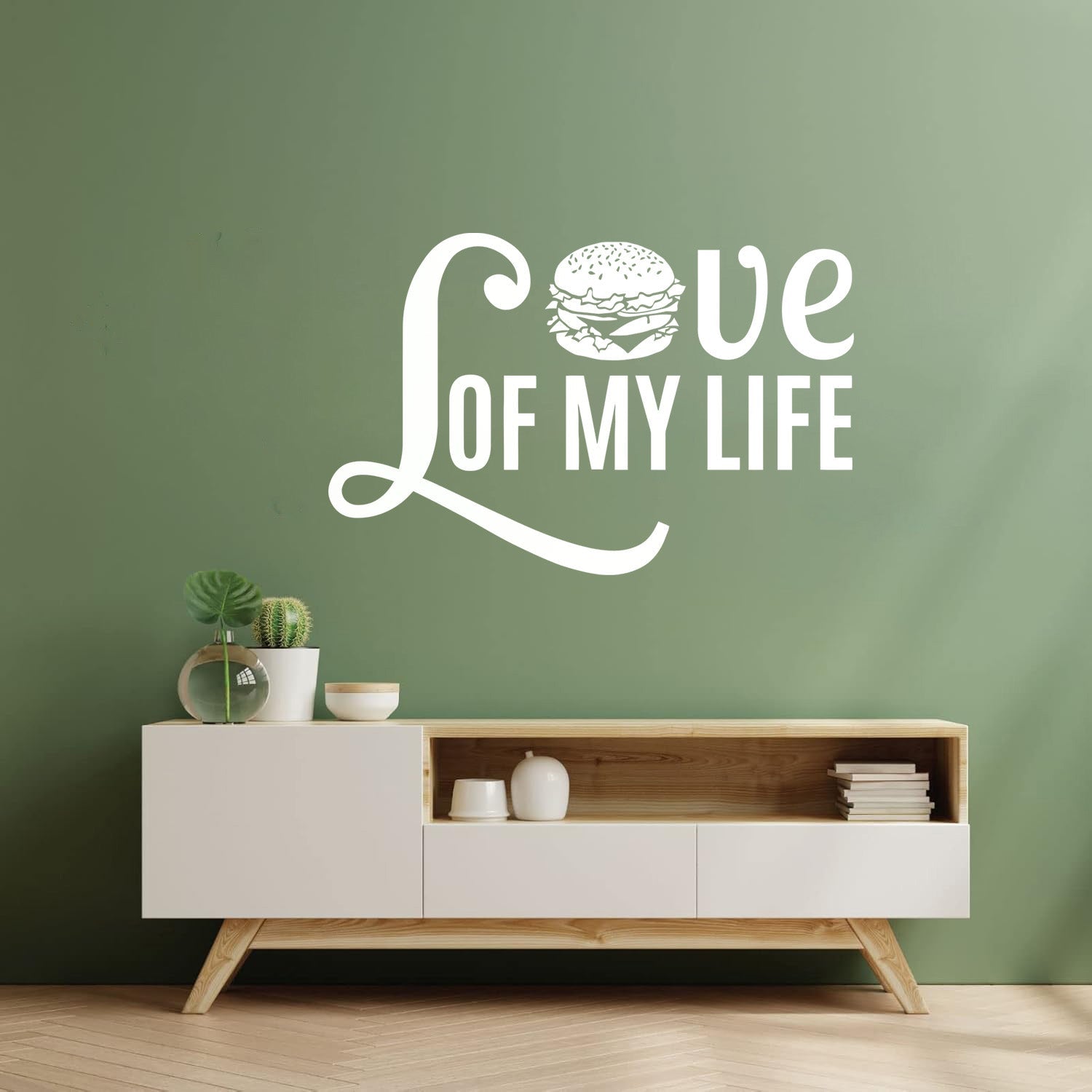 Vinyl Wall Stickers Phrase Love Burger Fast Food Cafe Restaurant Art Decoration