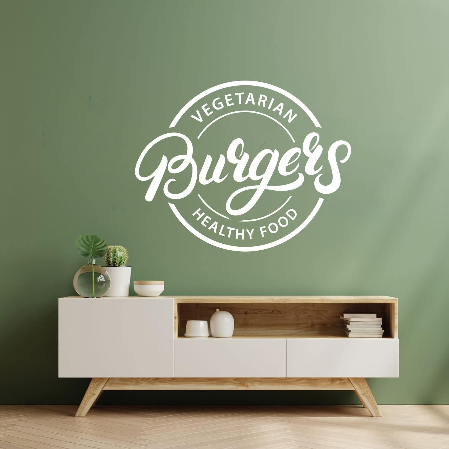 Mural And Wall Vinyl Decal Vegetarian Burgers Logo Lettering Healthy Food Glass Stickers