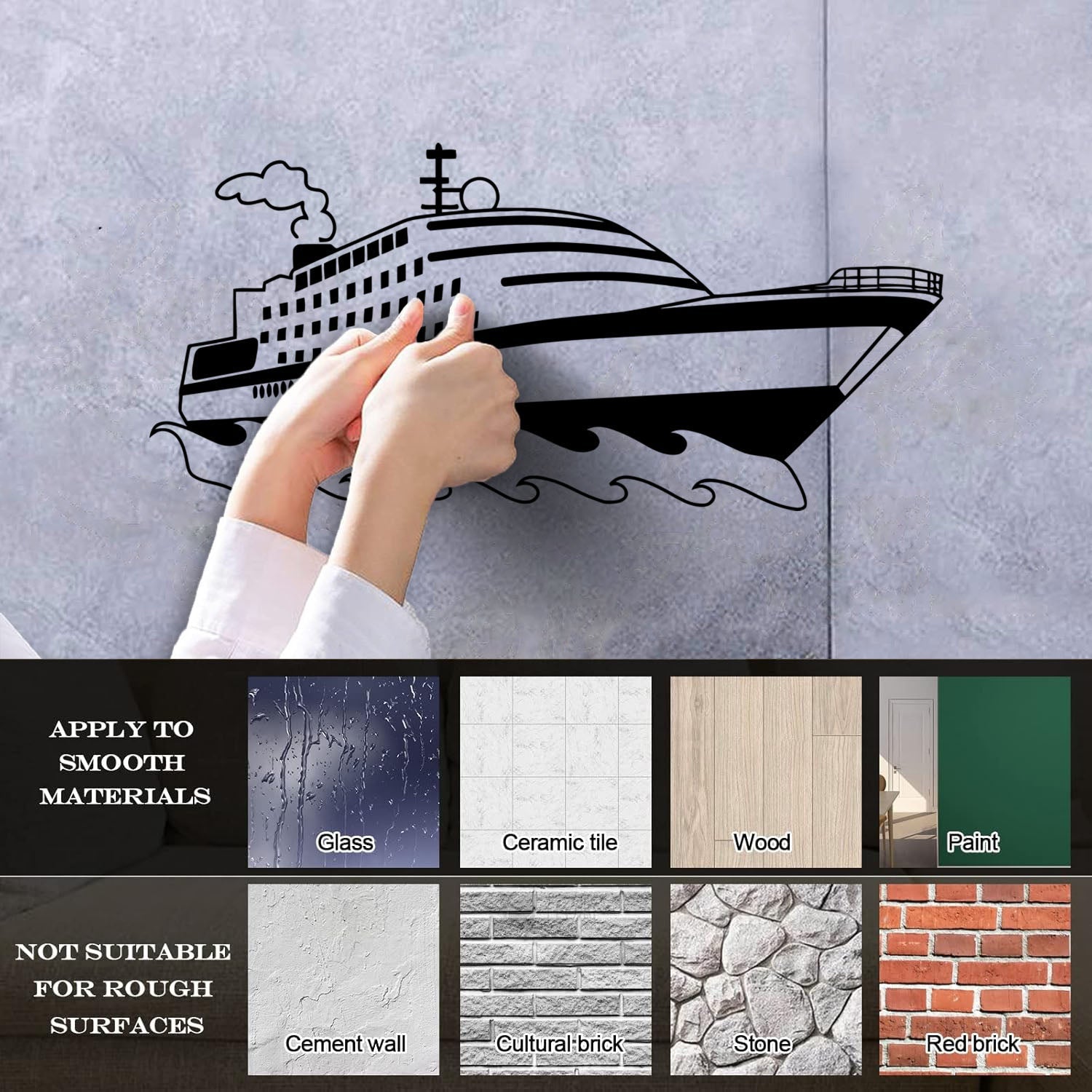 Gently press the decal area to secure it firmly to the wall.