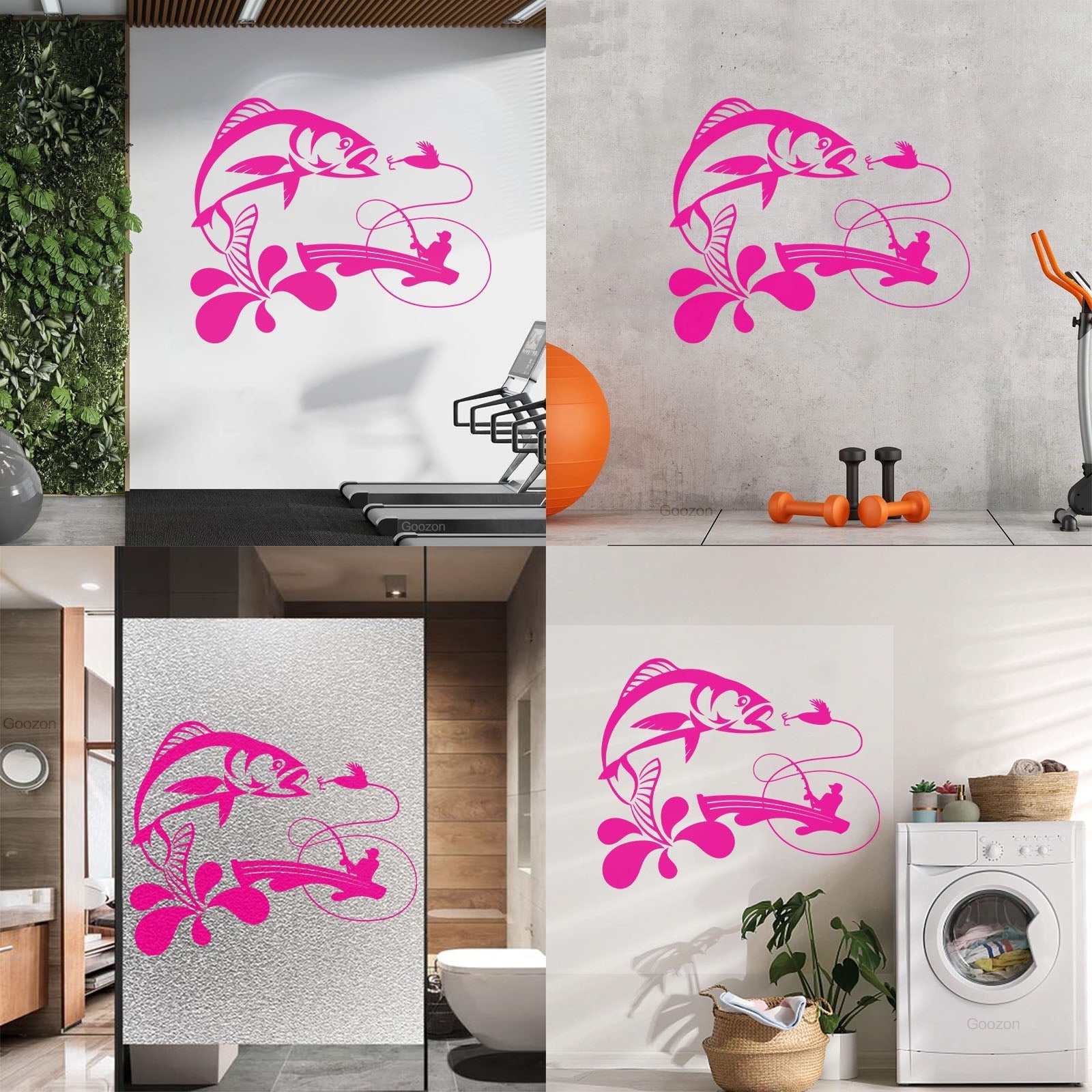 Wall Decals Paster Paper Fish Fishing Rod Boat Hobby Bait Art Decoration