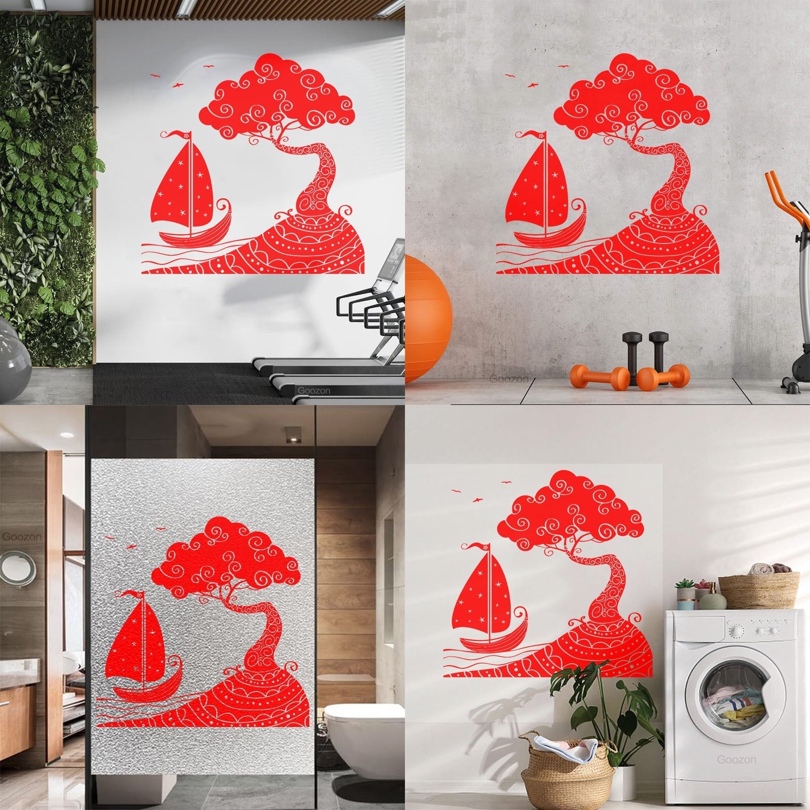 Gently press the decal area to secure it firmly to the wall.