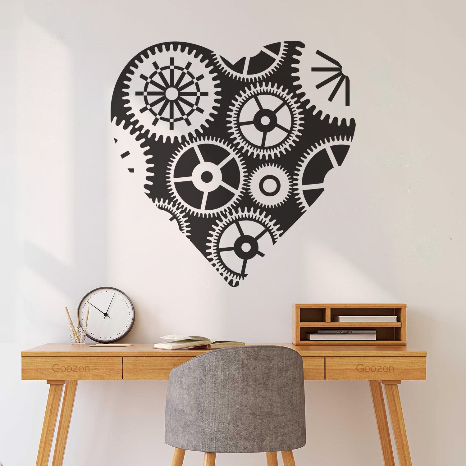 Lettering Stickers Steampunk Heart Gears Mechanical Garage Tattoo Culture