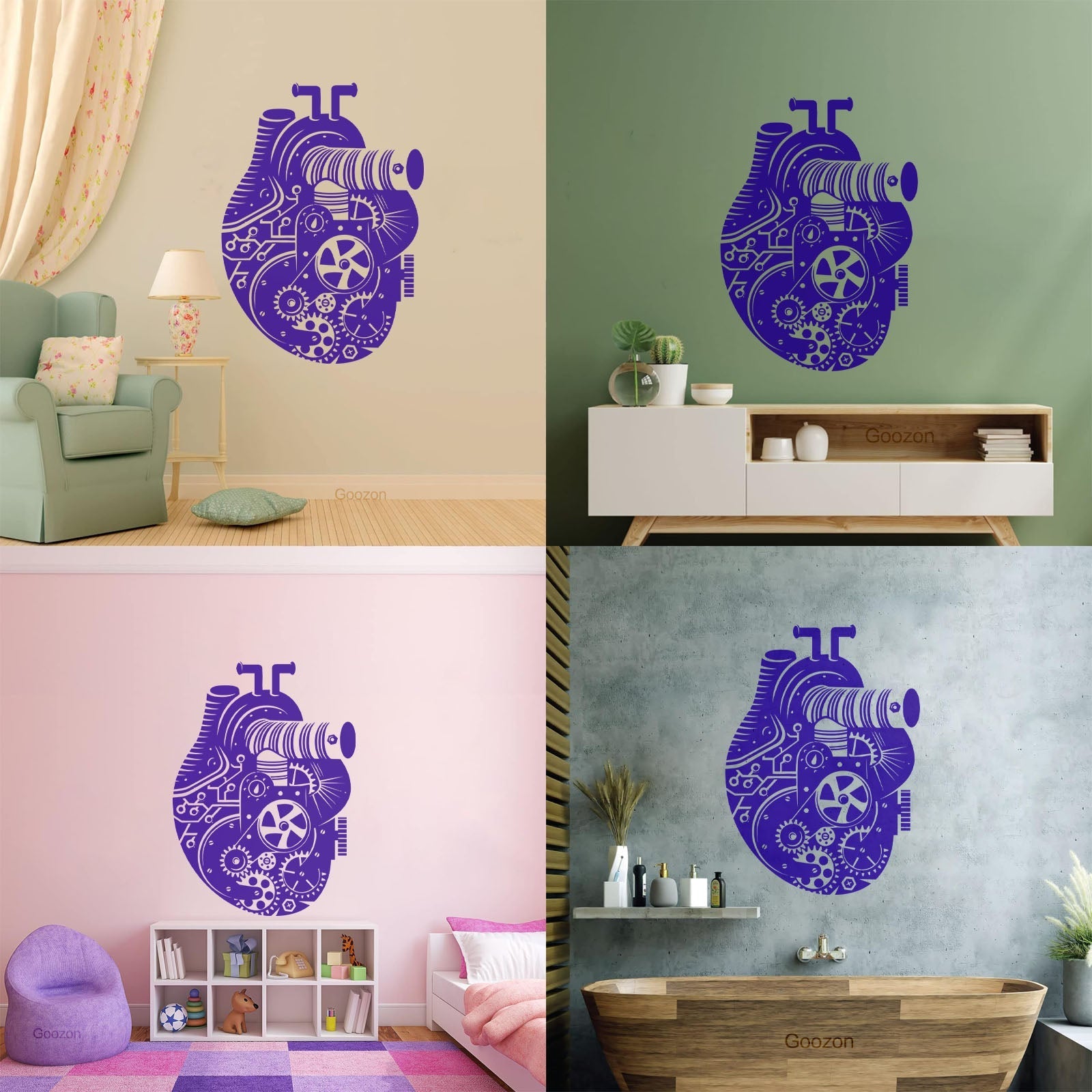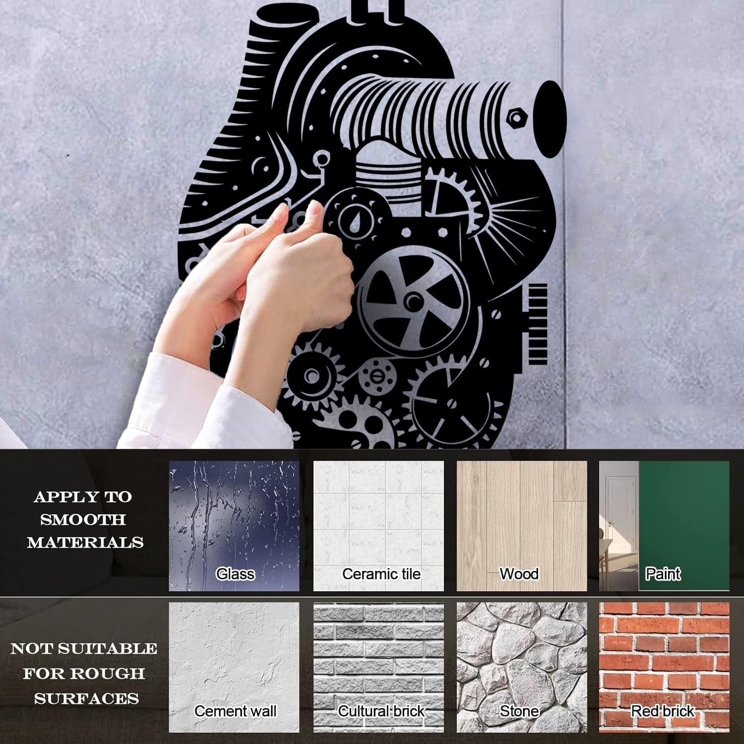 Vinyl Wall Stickers Steampunk Style Mechanical Heart Gears Self Adhesive