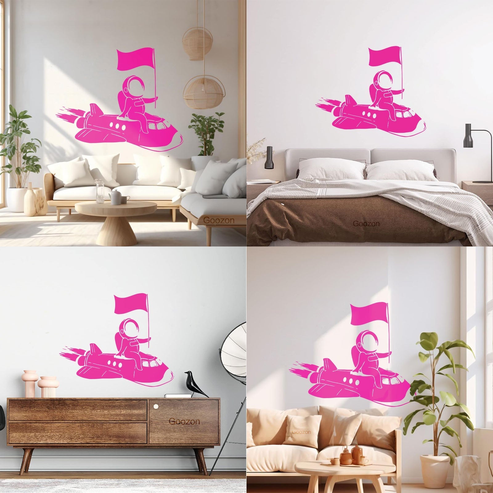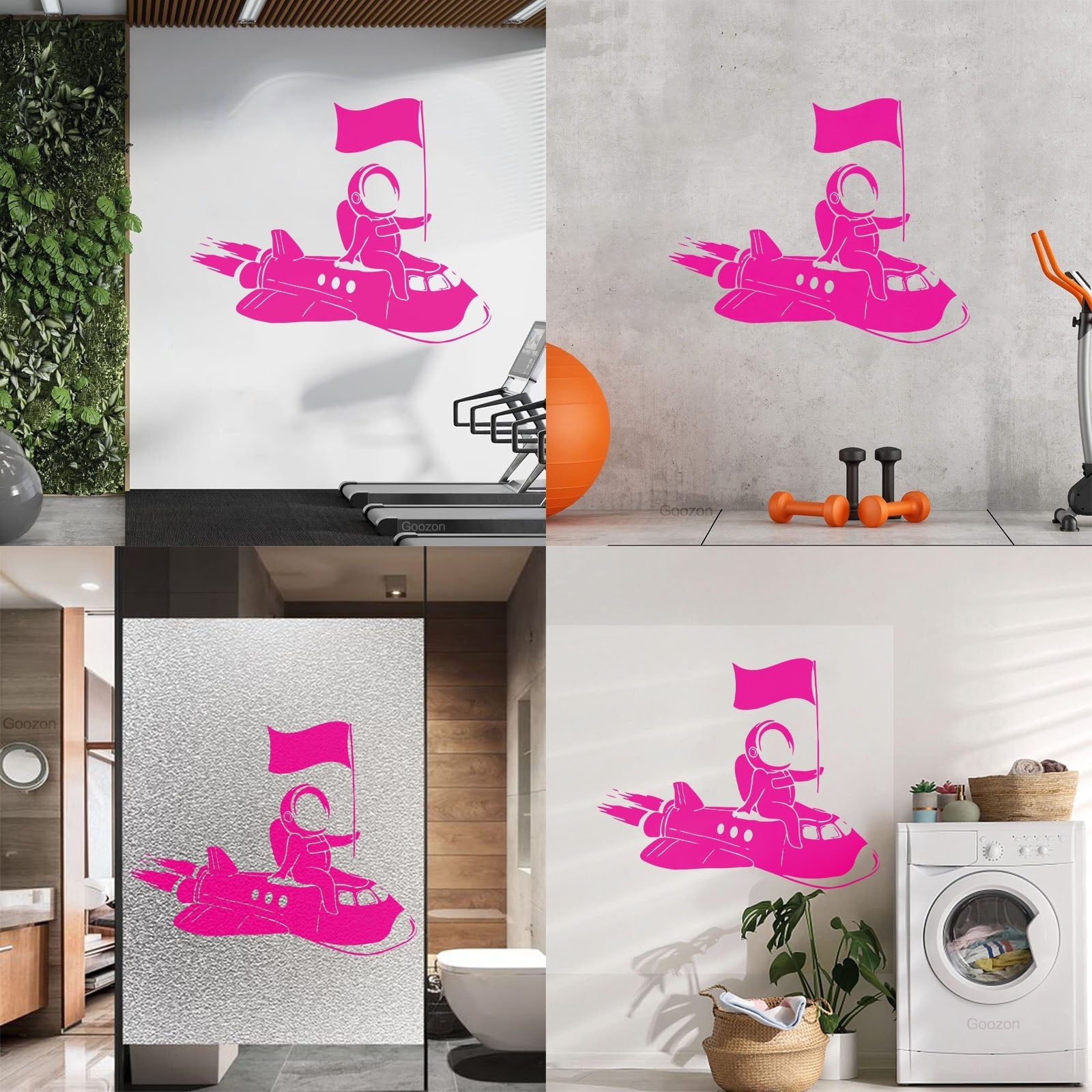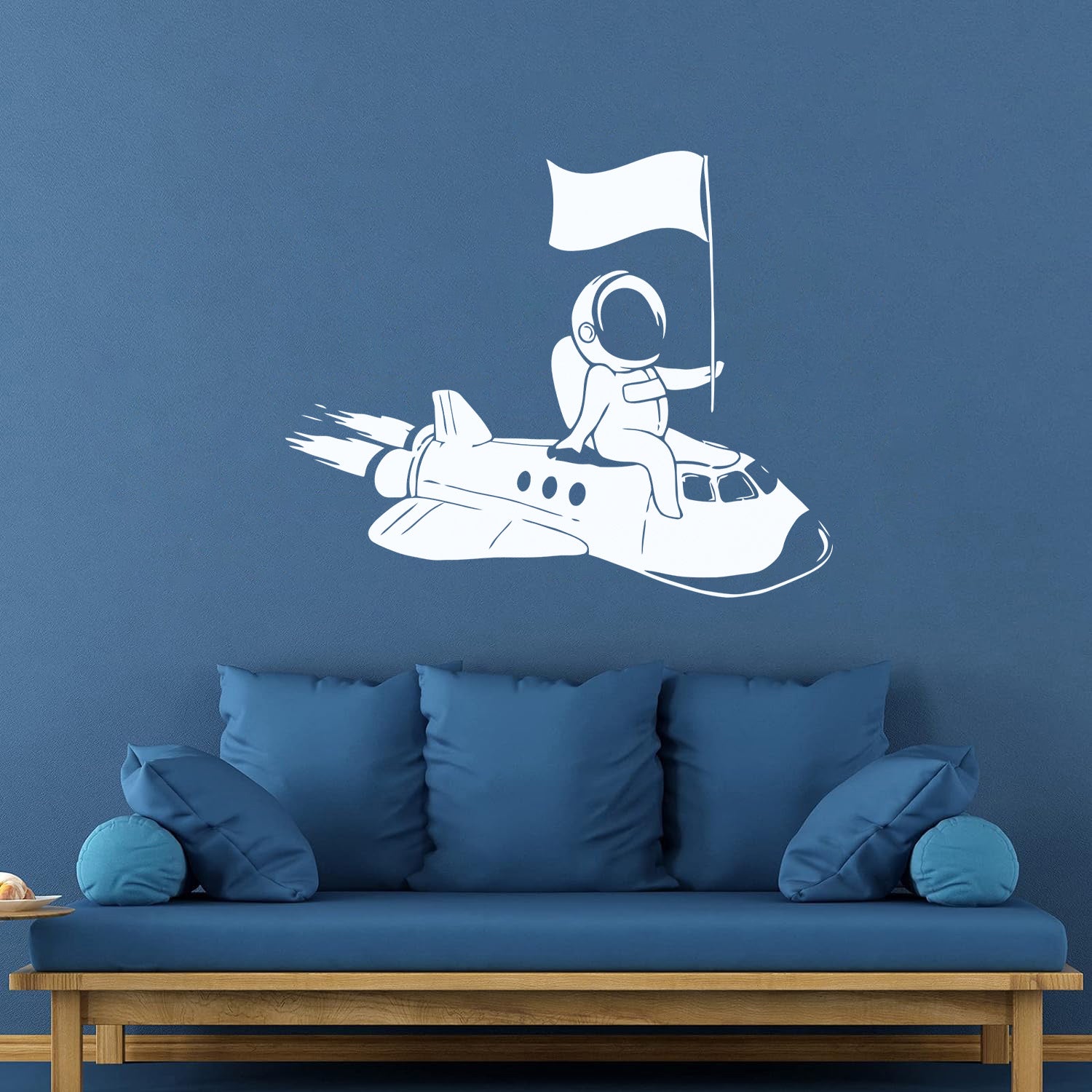 Wall Vinyl Sticker Decor Astronaut Flying Space Rocket Universe Self Adhesive