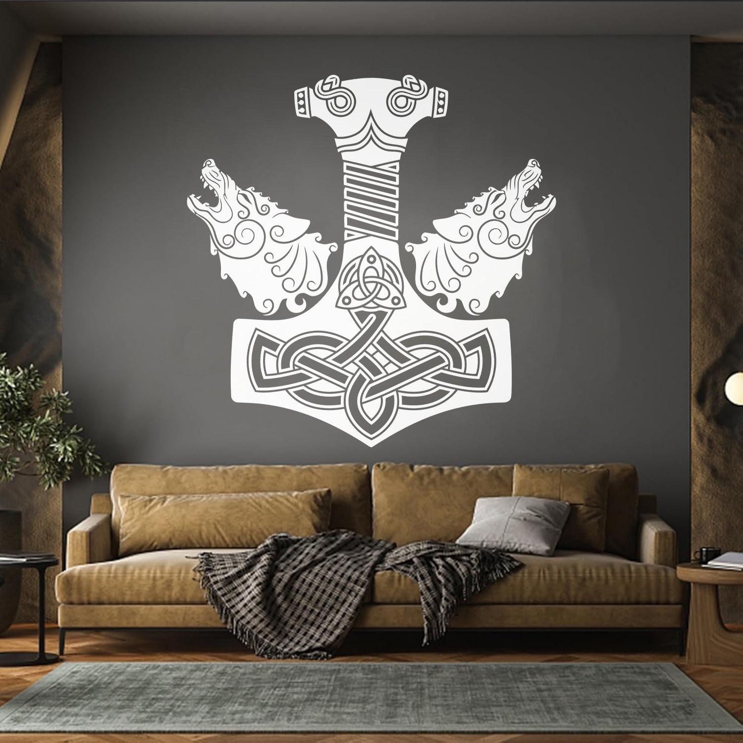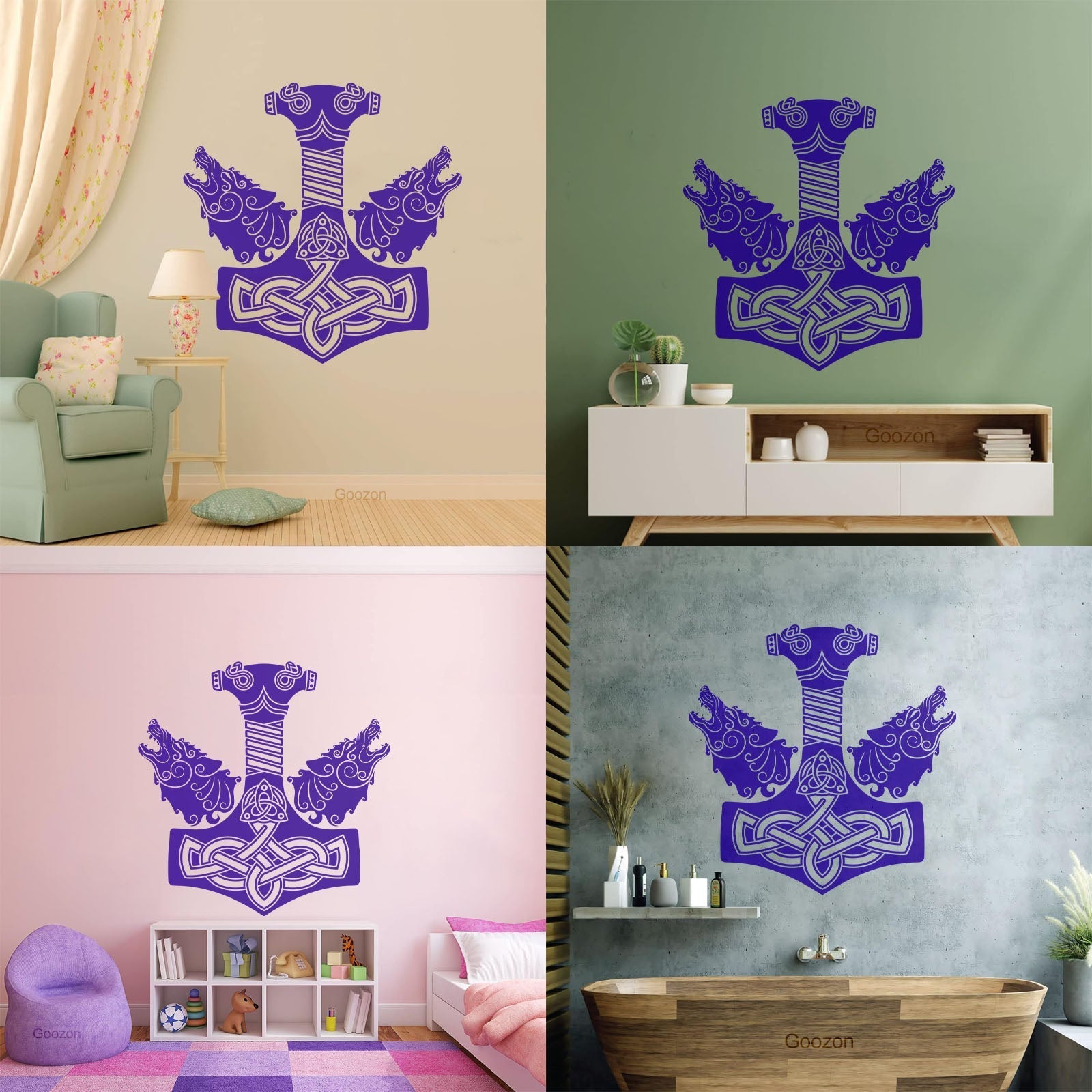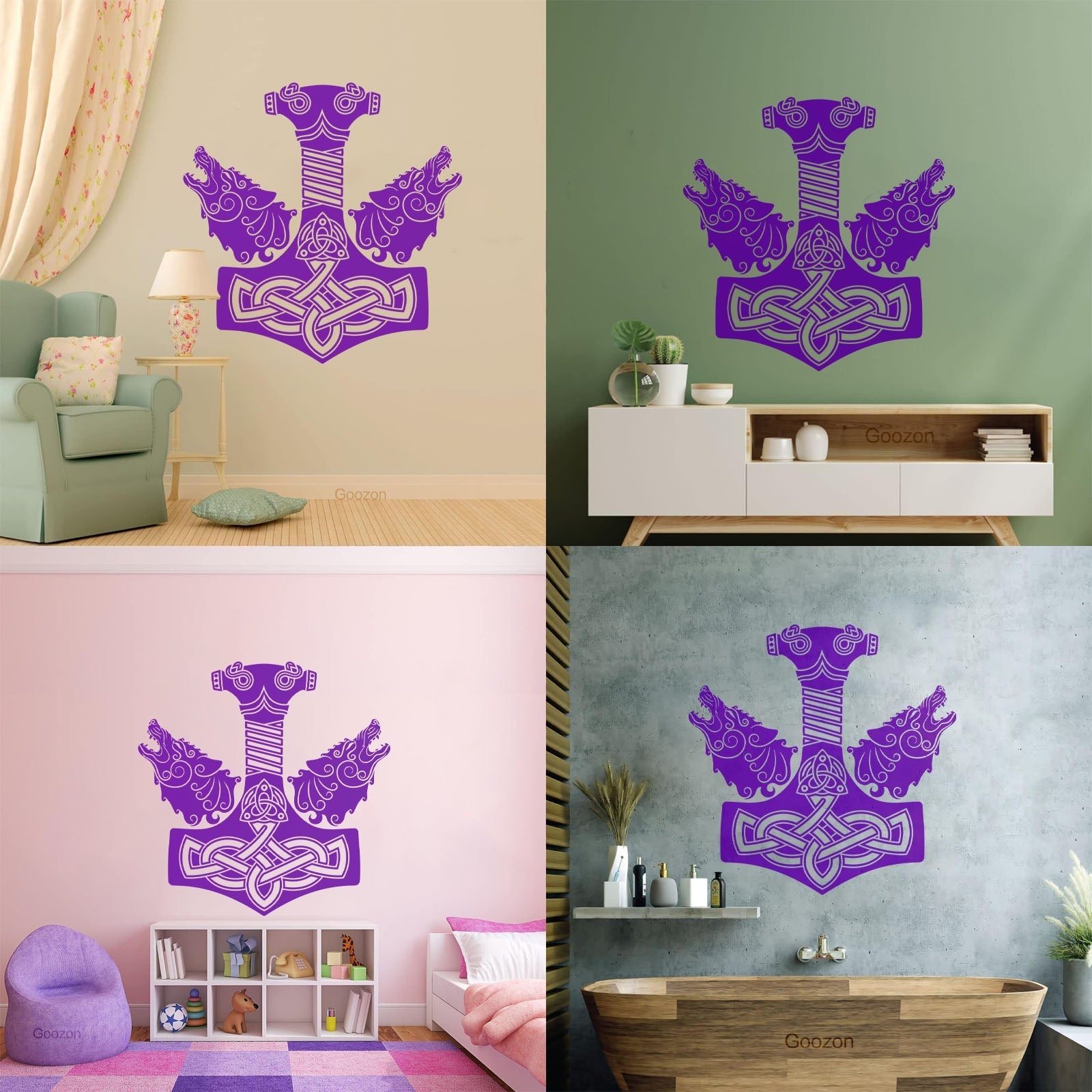 Wall Decals Pvc Celtic Ornament Viking Sword Handle Two Wolf Heads Multi Color Selection