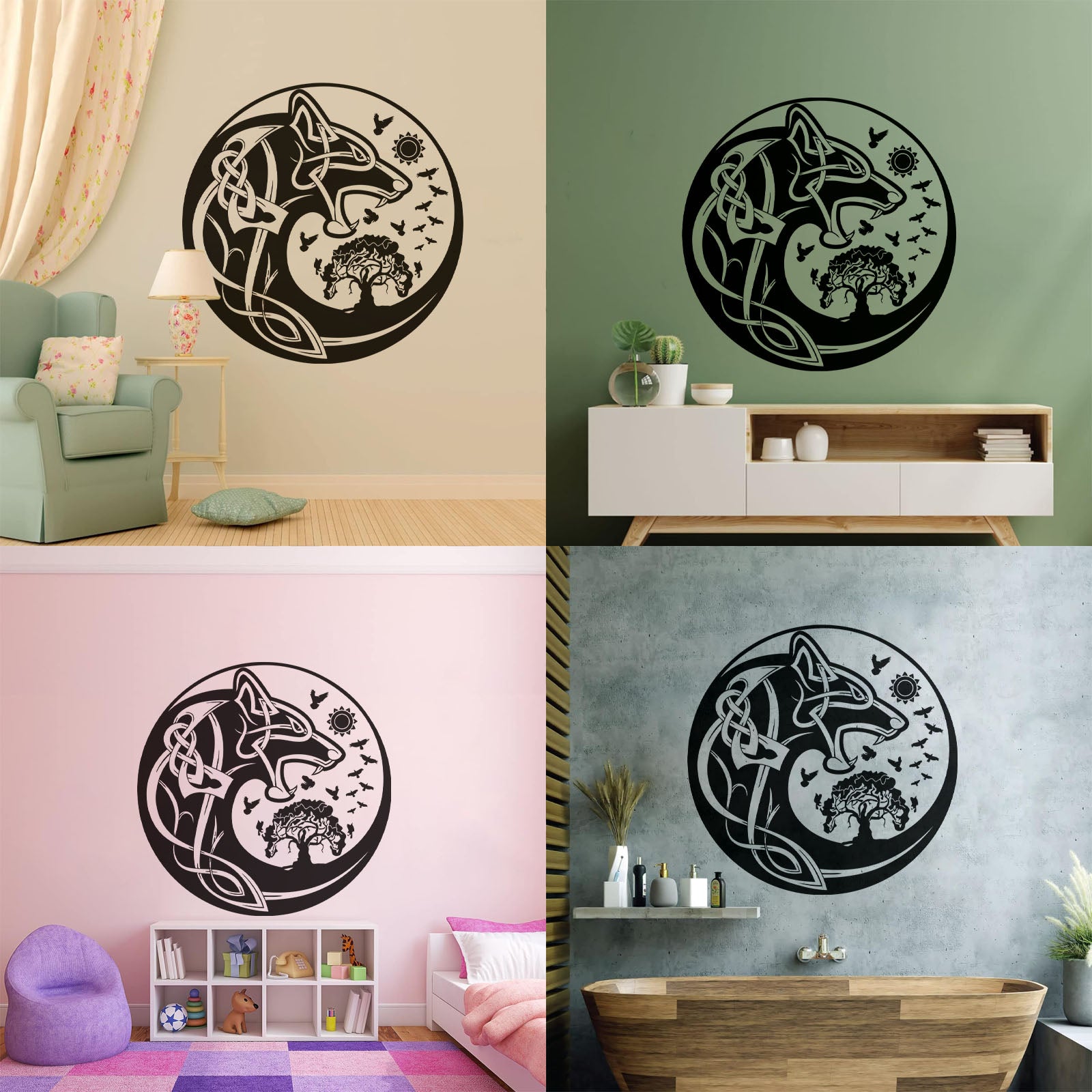 Celtic Symbols Wolf Tree Birds Patterns Sun Fine Carving Stickers Wall Beautification
