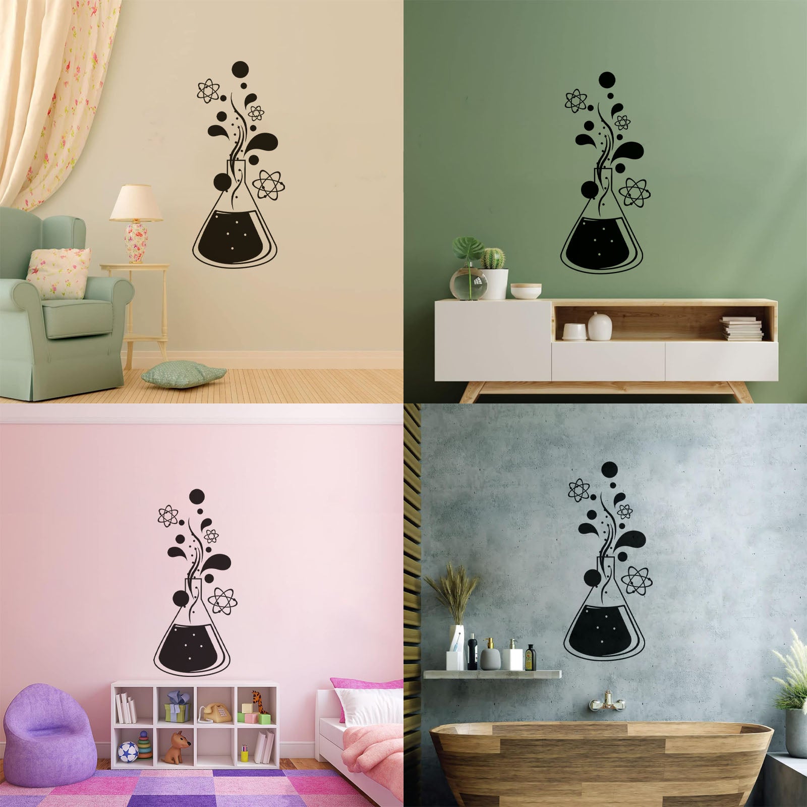 Wall Stickers Chemistry Science Atom Molecules School Easy Installation