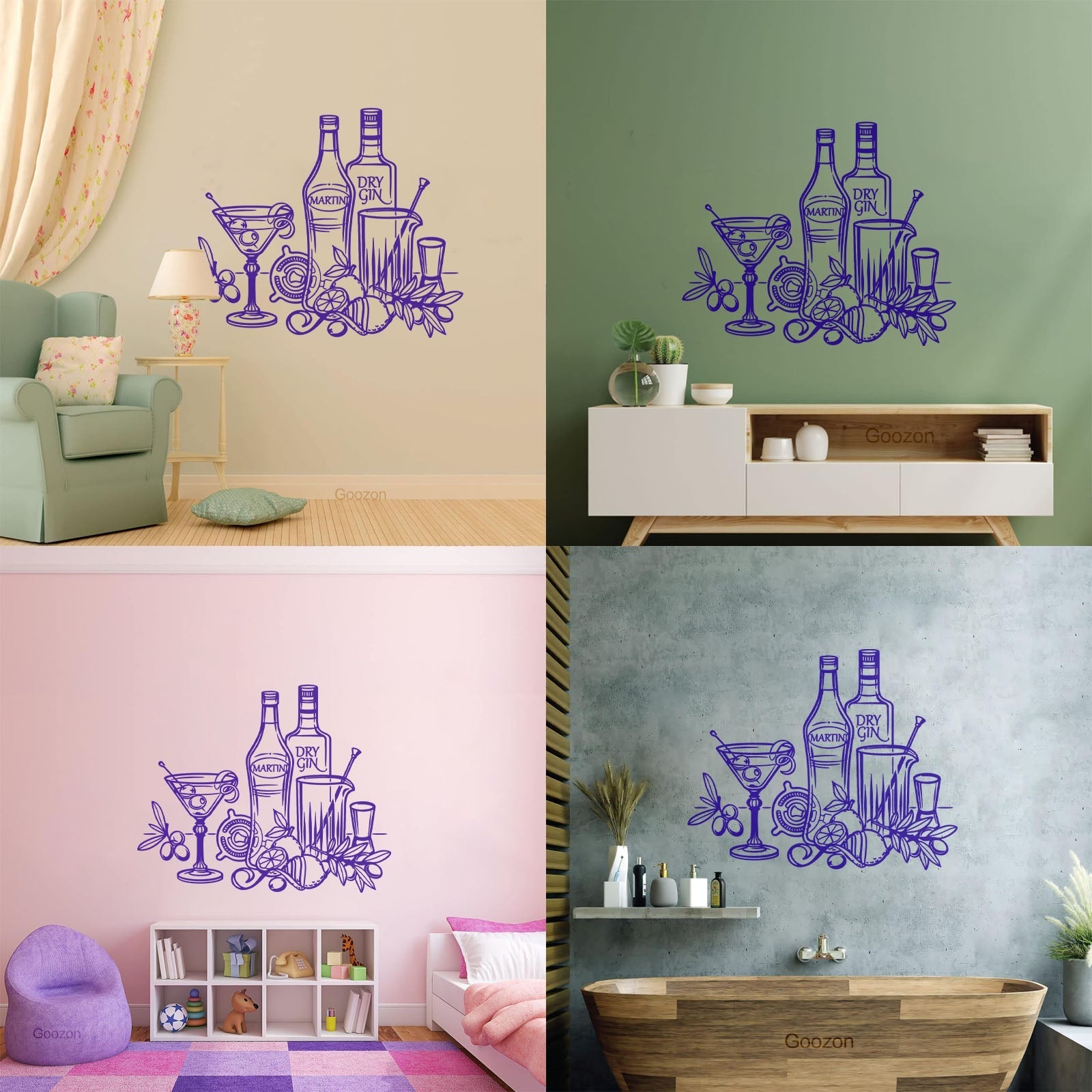 Wall Vinyl Sticker Decor Bar Cocktail Umbrella Martini Alcohol Drink Personalized Customization