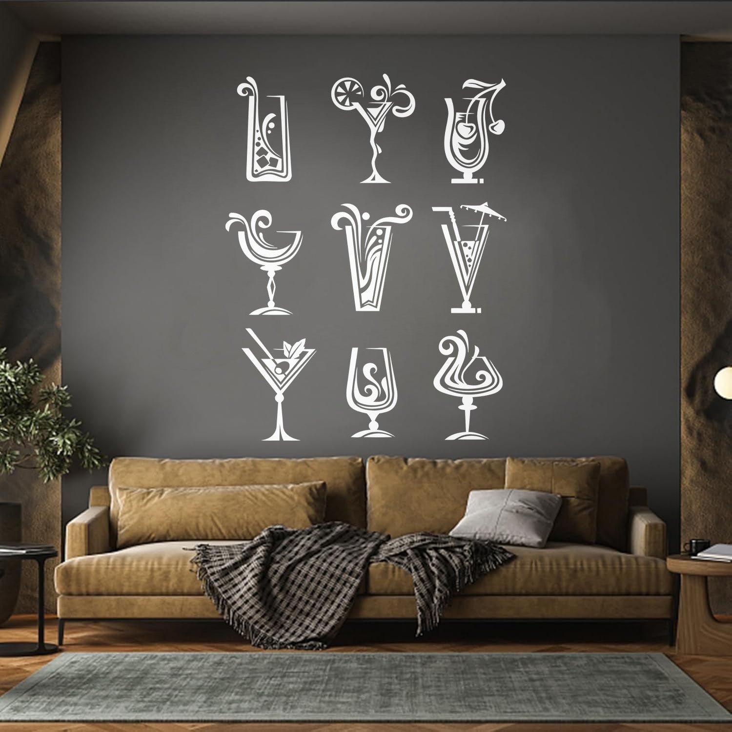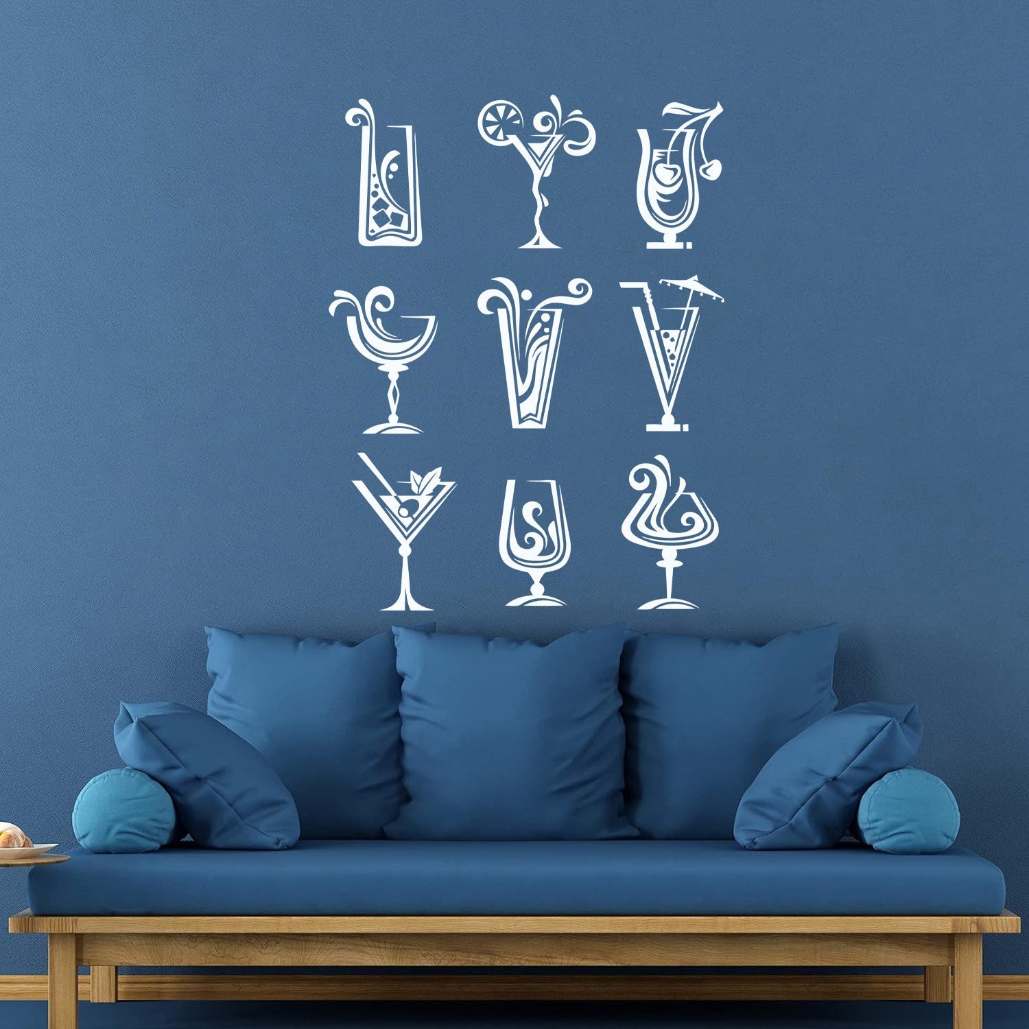 Wall Decals Pvc Drinks Cocktail Glass Collection Mixed Drink Cafe Car Body Decoration