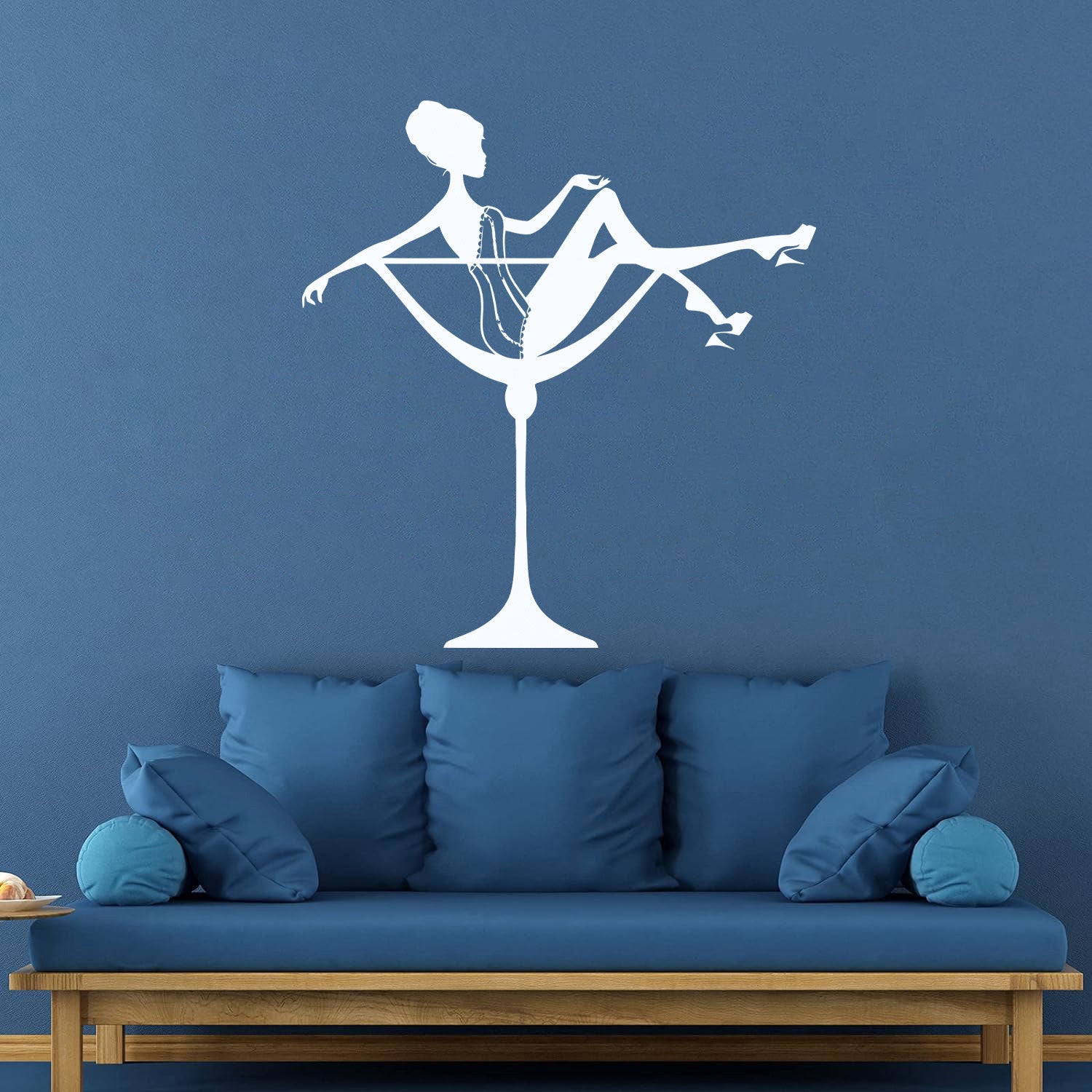Fine Carving Stickers Appeal Woman Cocktail Glass Pin Up Do Not Damage The Wall Surface