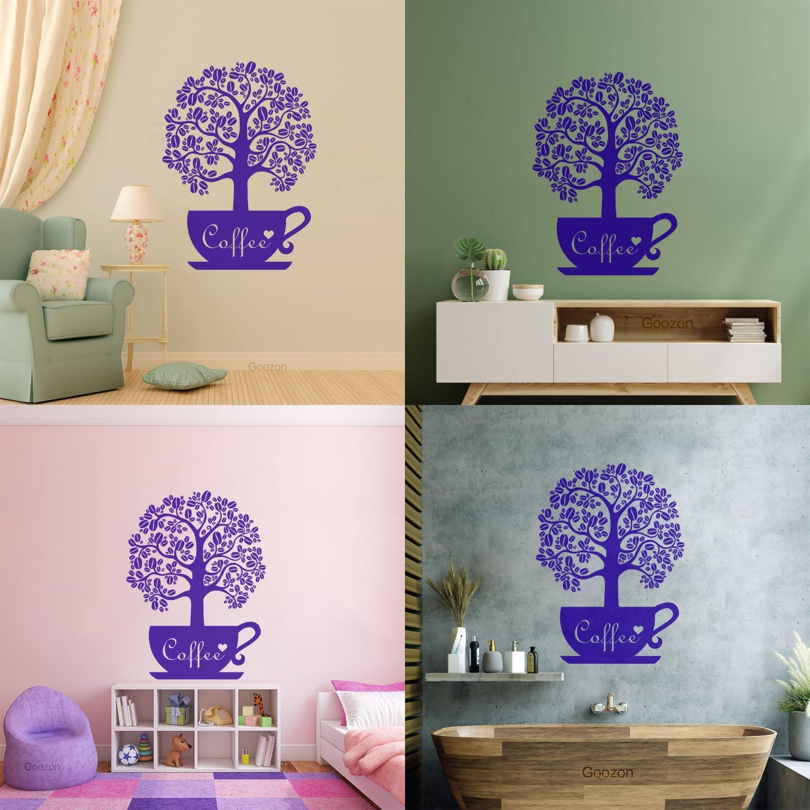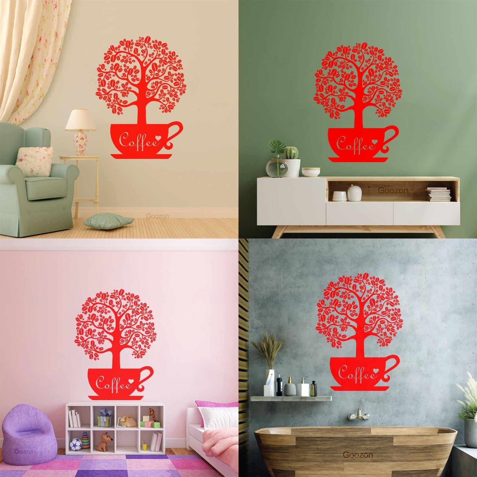 Vinyl Art Sticker Coffee Beans Shop Tree Window Decals