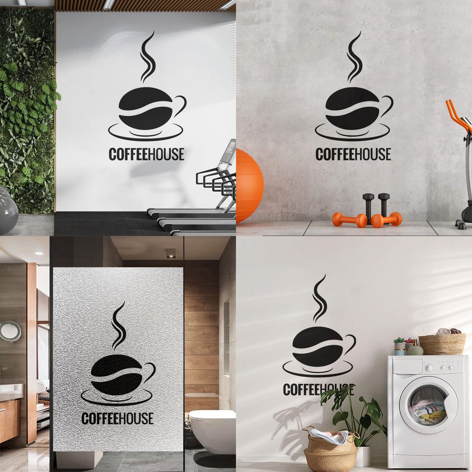 Engraving Stickers Coffee House Logo Cup Cafe Coffee Bean Wall Beautification