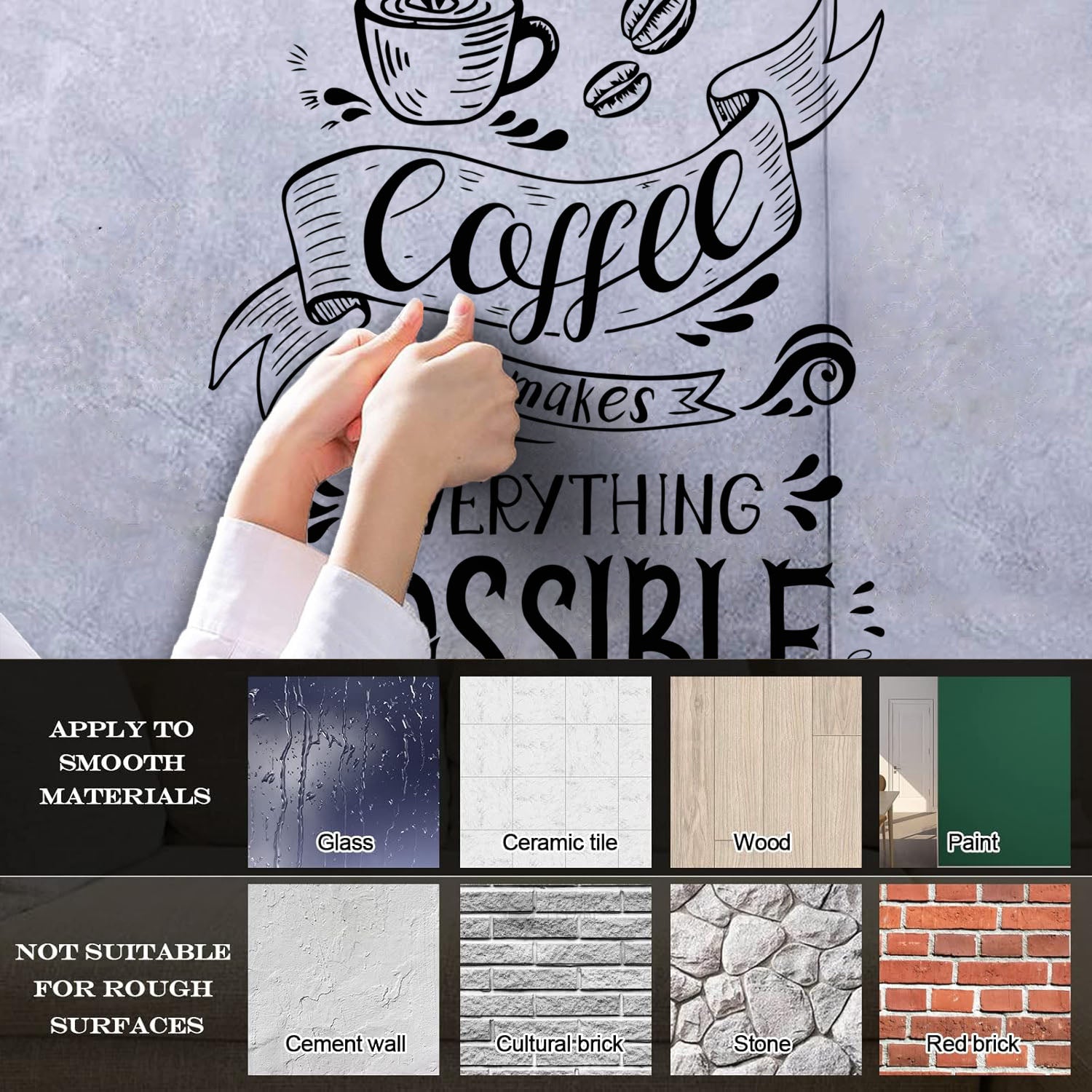 Fine Carving Decals Coffee Makes Everything Possible Motivation Quote Waterproof