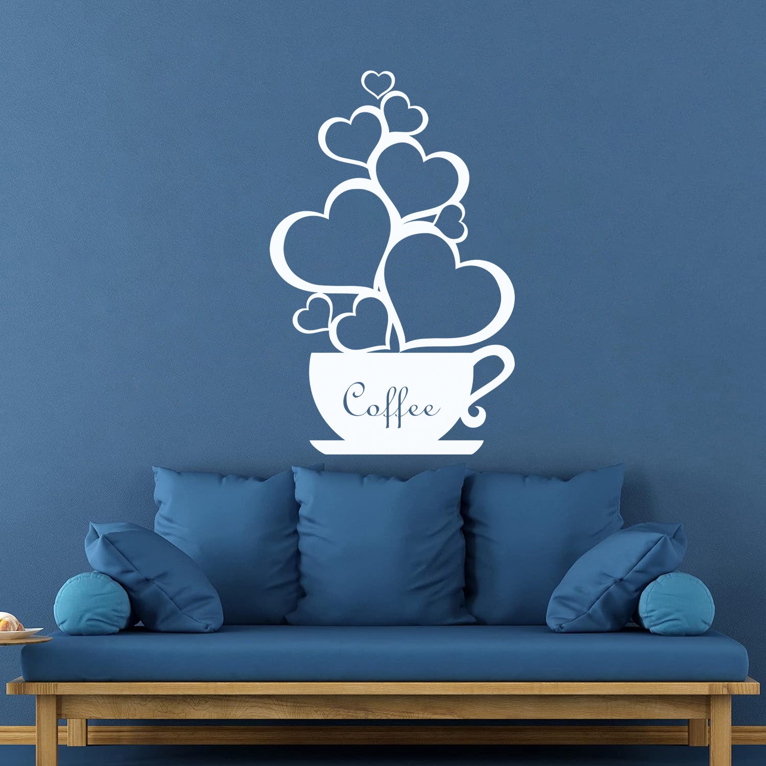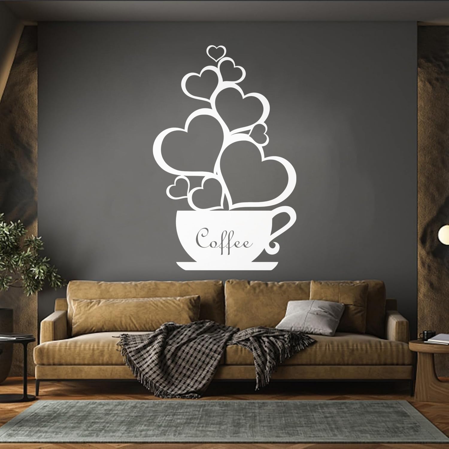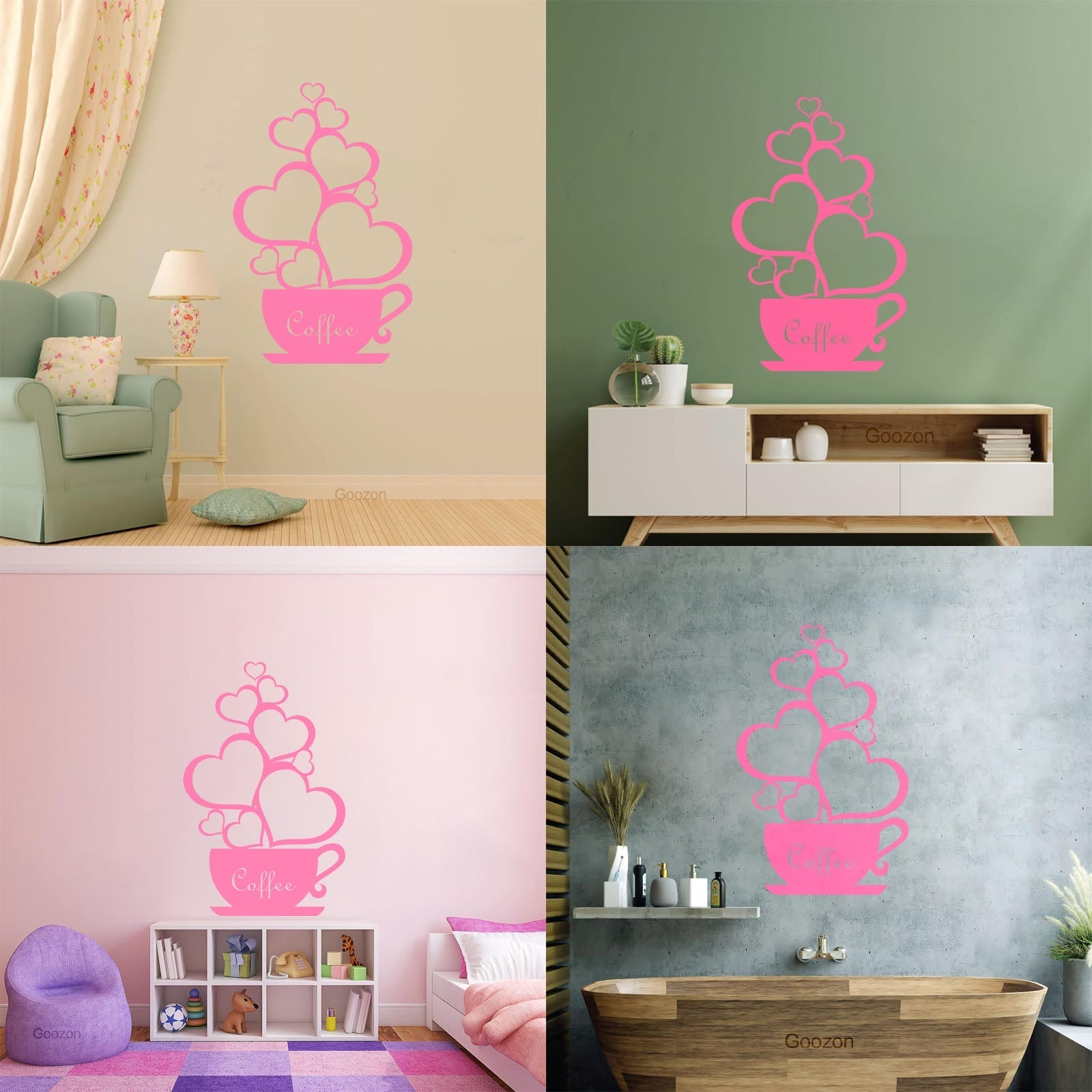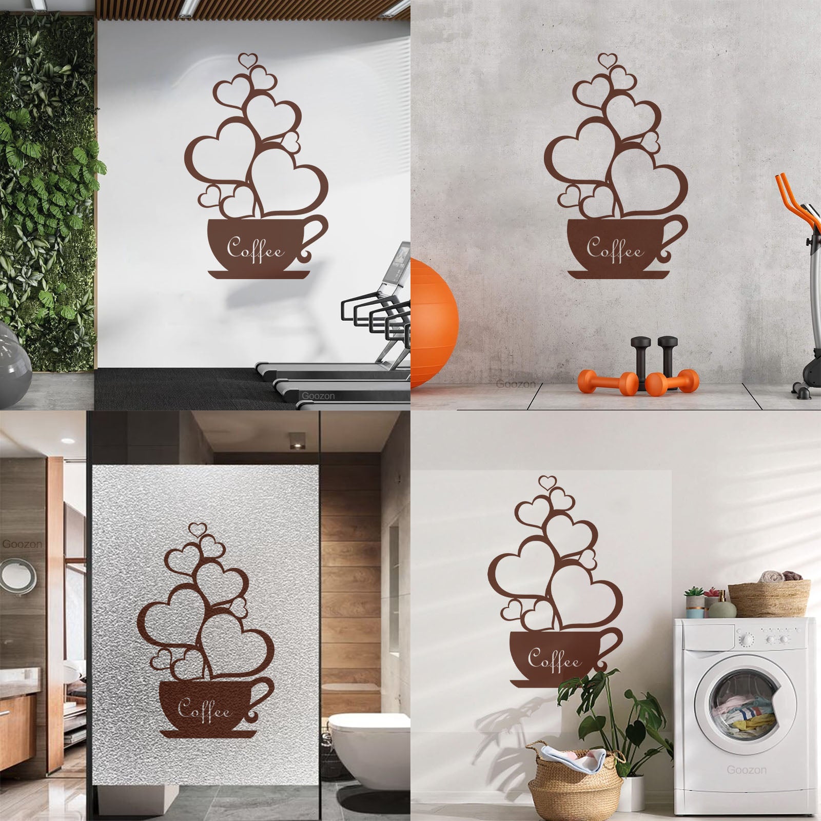Wall Decals Pvc Coffee Shop Cup Hearts Love Romantic Art Decoration