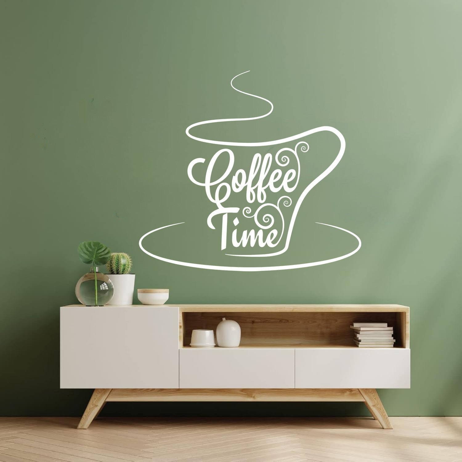 Engraving Stickers Coffee Time Lettering Cafeteria Tea Cup Multiple Size Options