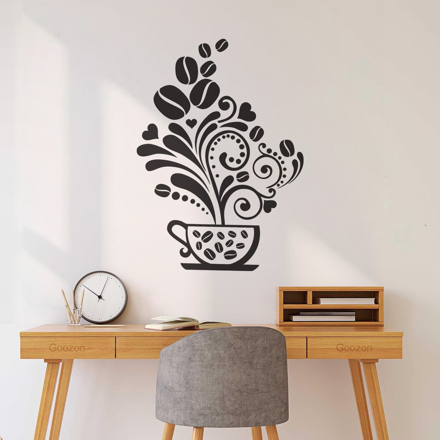 Vinyl Wall Stickers Floral Coffee Beans Cups Cafe Kitchen It Won'T Fall Off