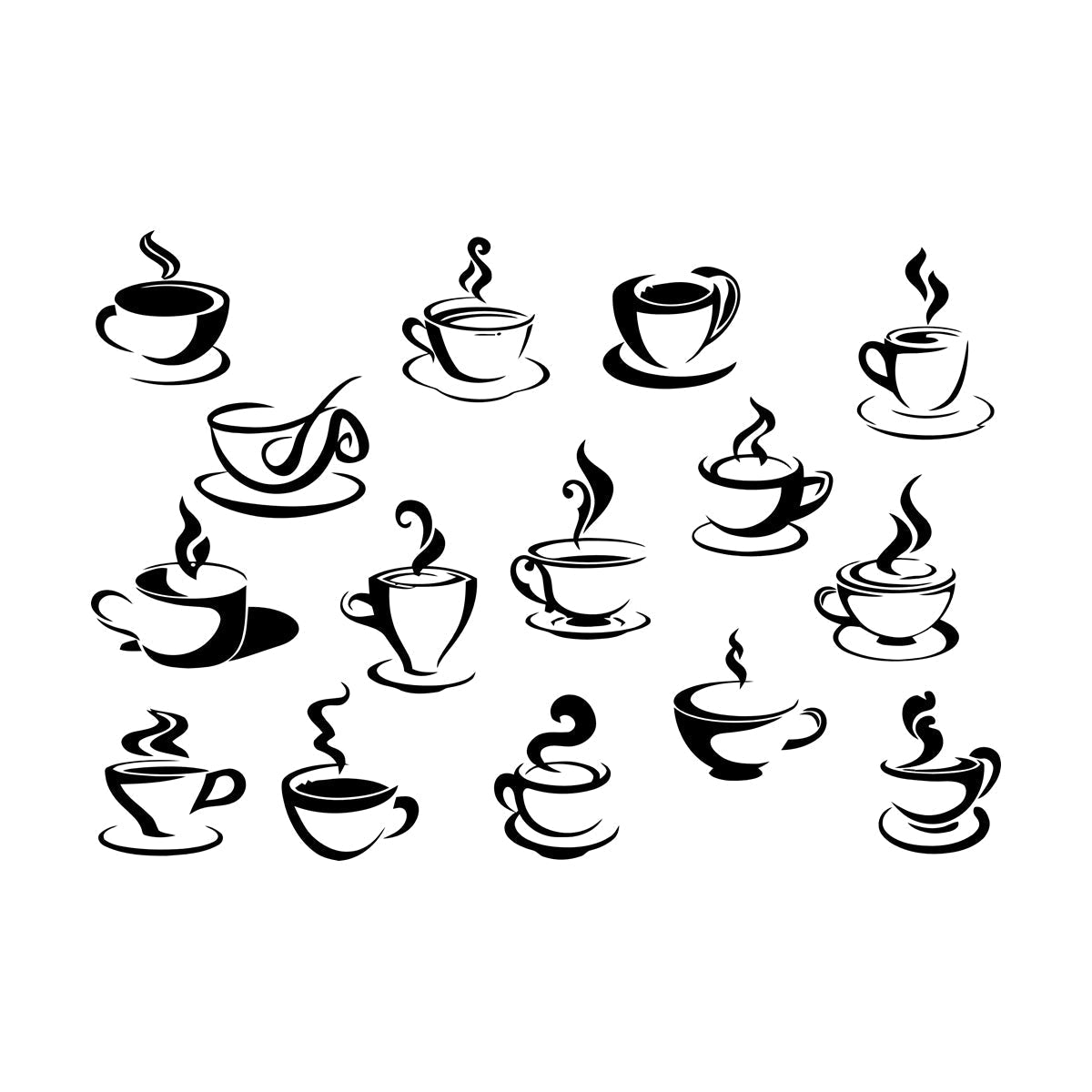 Wall Decals Tea Coffee Cups Collection Cafe Logo Equipped With Transfer Film Kit
