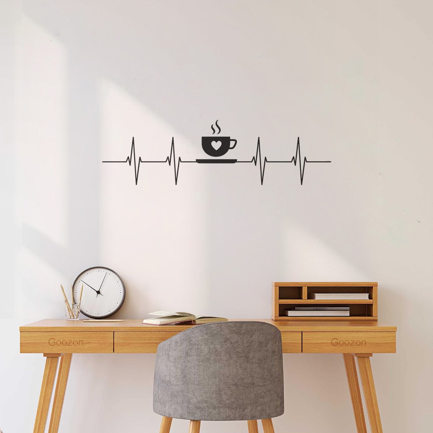 Vinyl Wall Decals Tea Coffee Time Cup Heartbeat Cafe Easy Installation