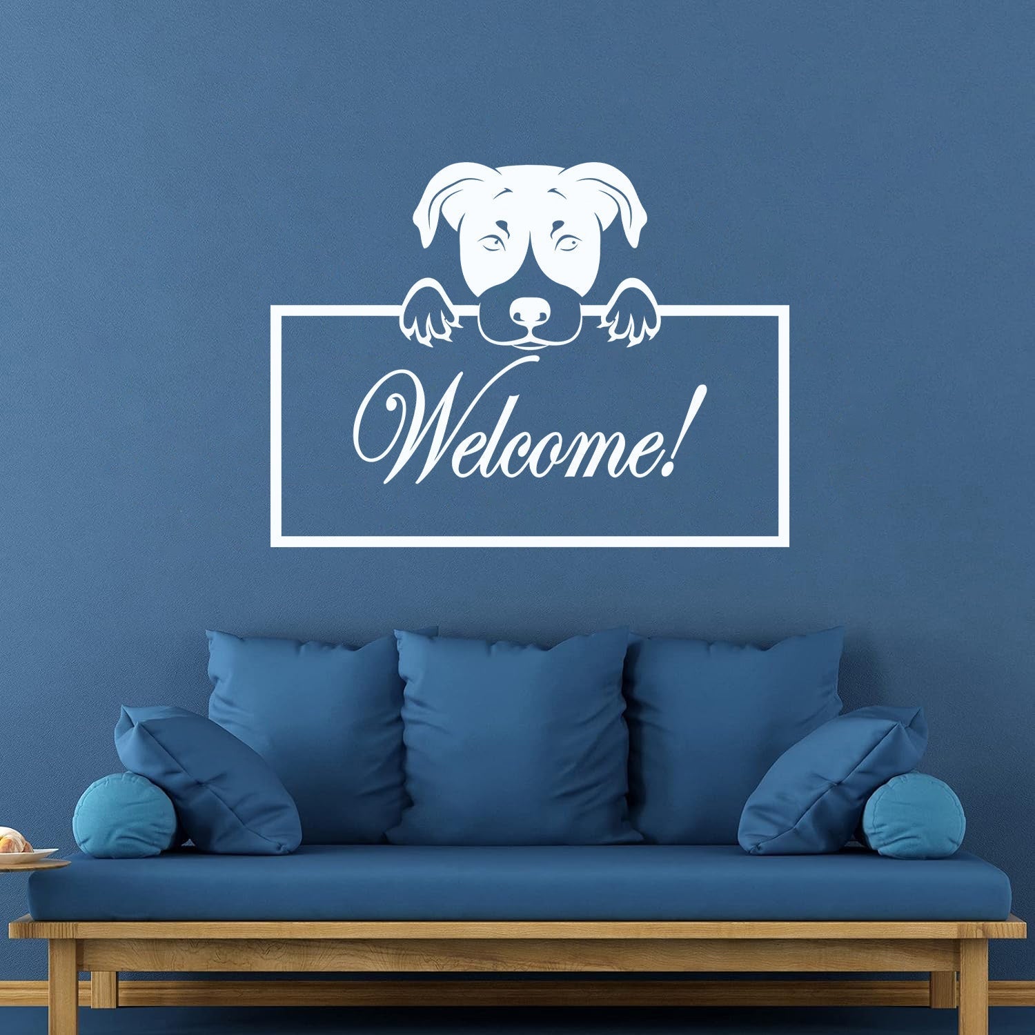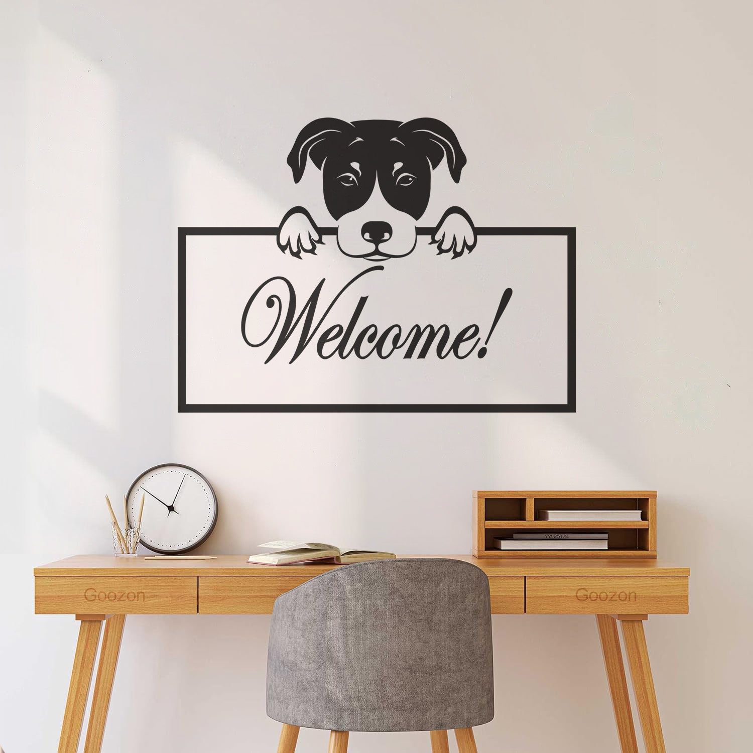 Welcome Lettering Cute Dog Head Engraving Stickers Glass Stickers