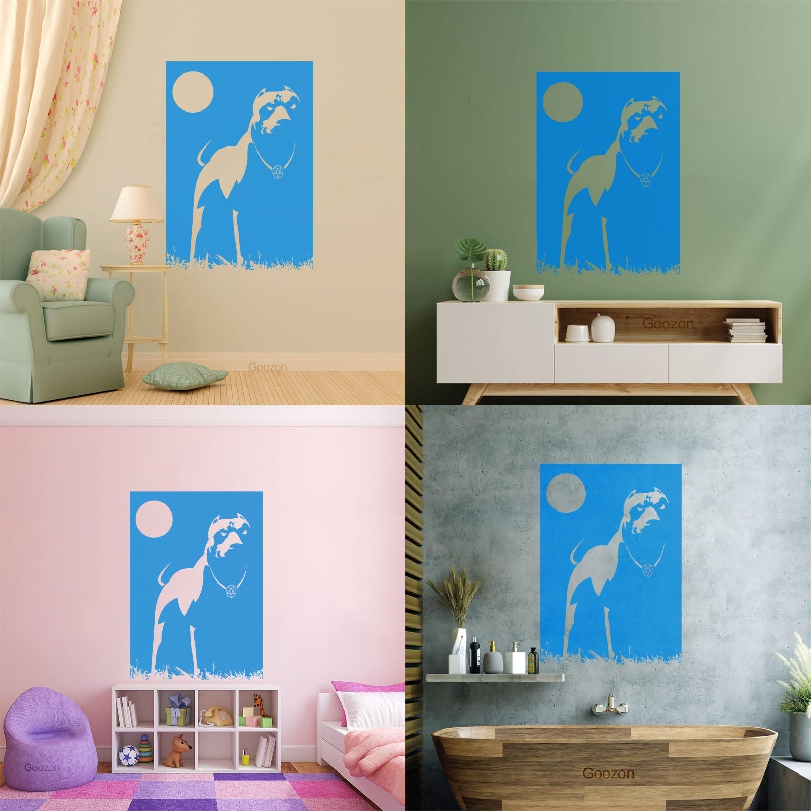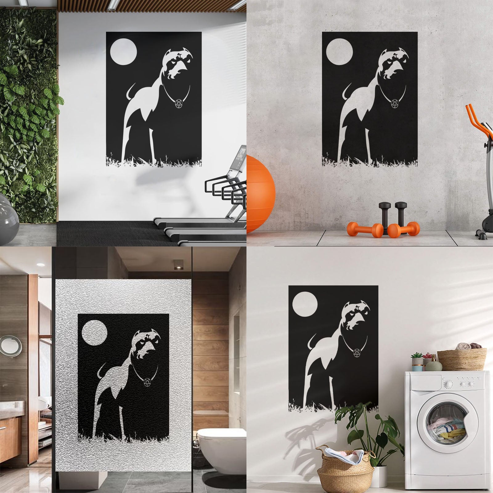 Engraving Decals Pitbull Dog Night Dark Moon Pentagram Cur Occult Easy Installation