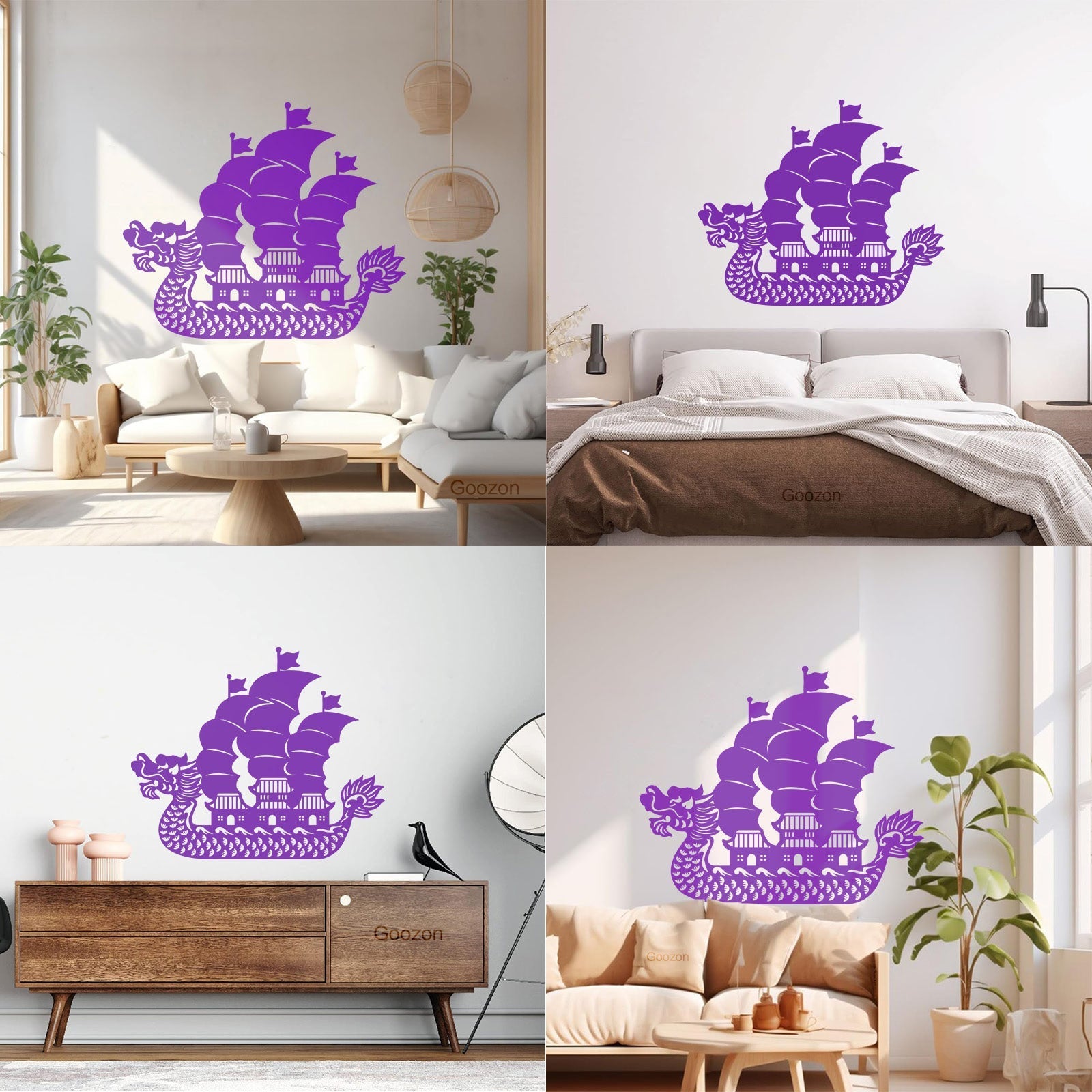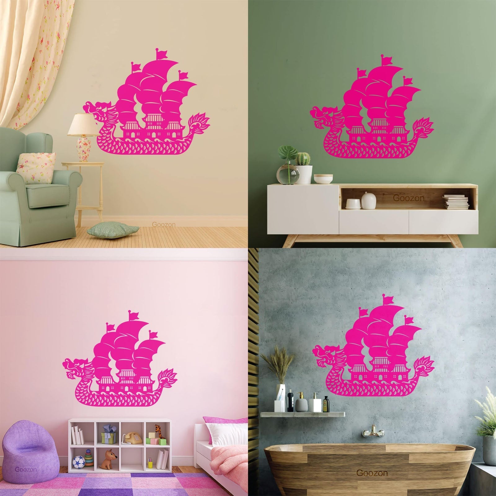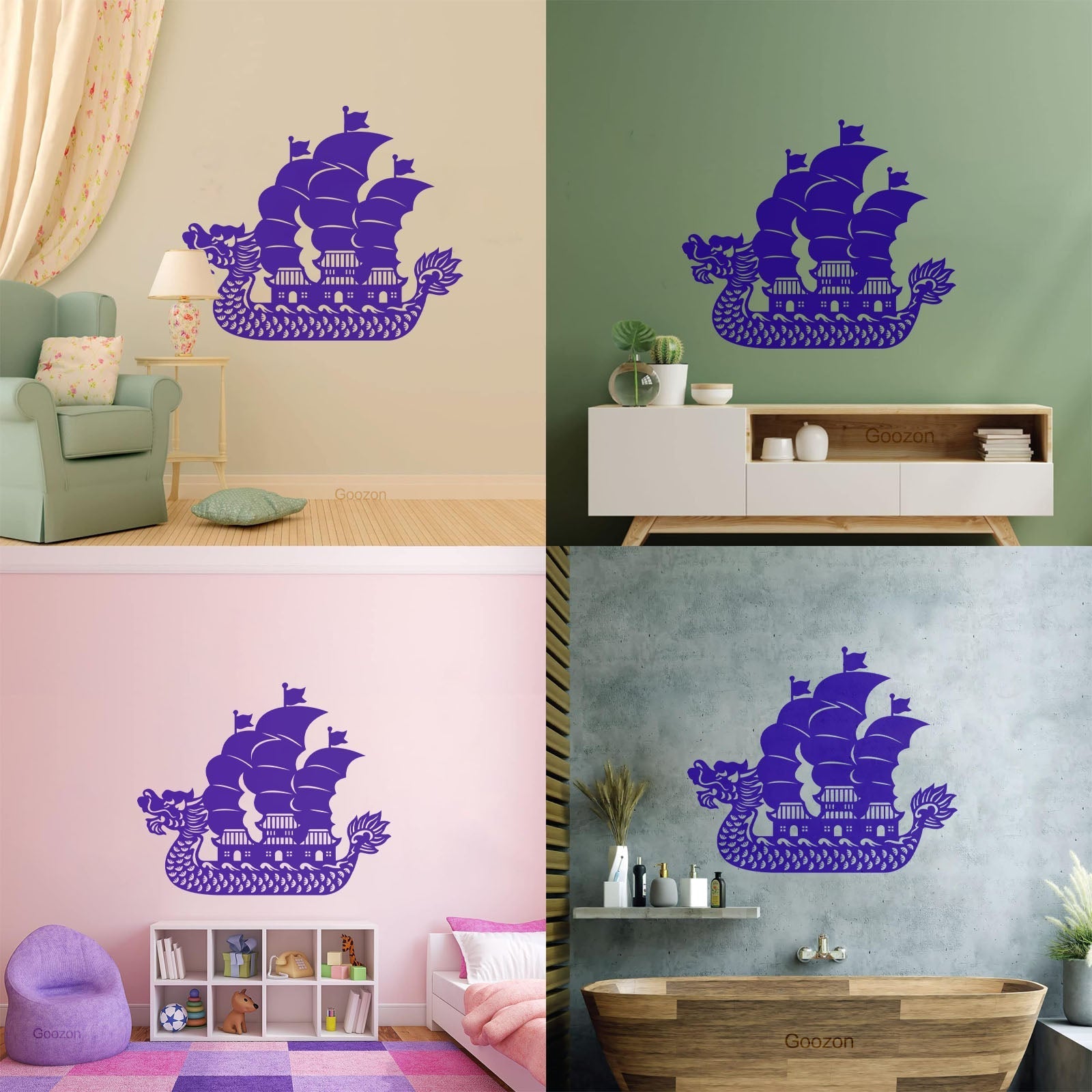 Wall Vinyl Sticker Decor Asian Chinese Dragon Boat Ation Easy Installation