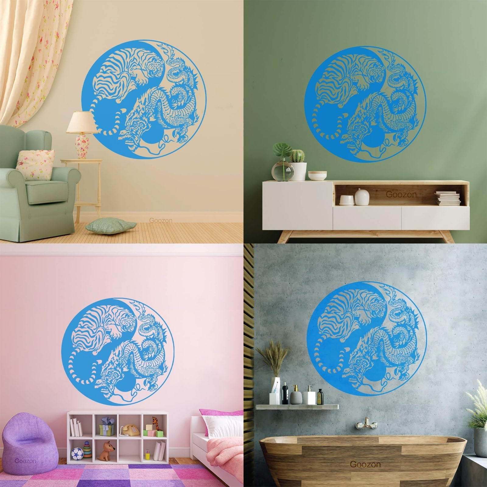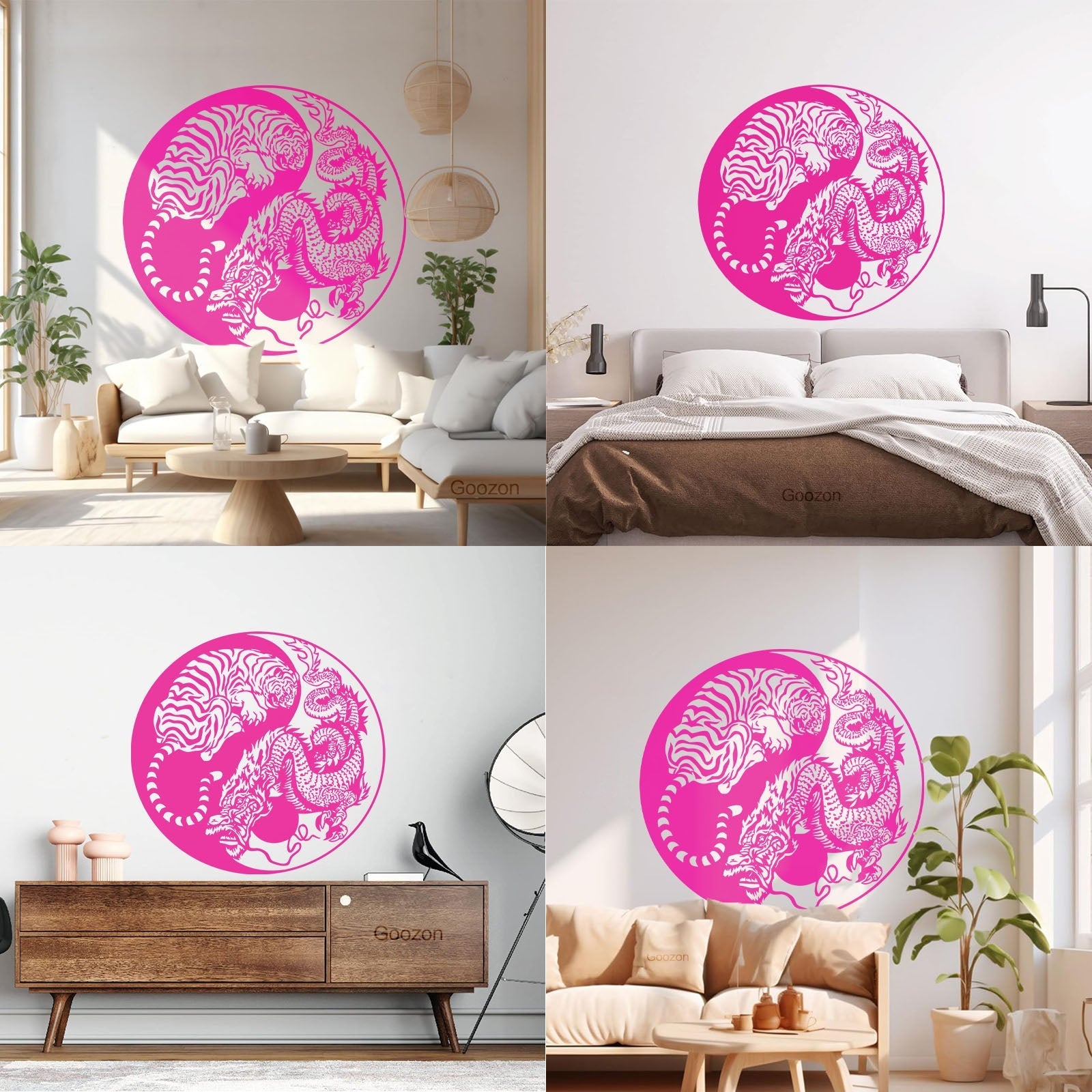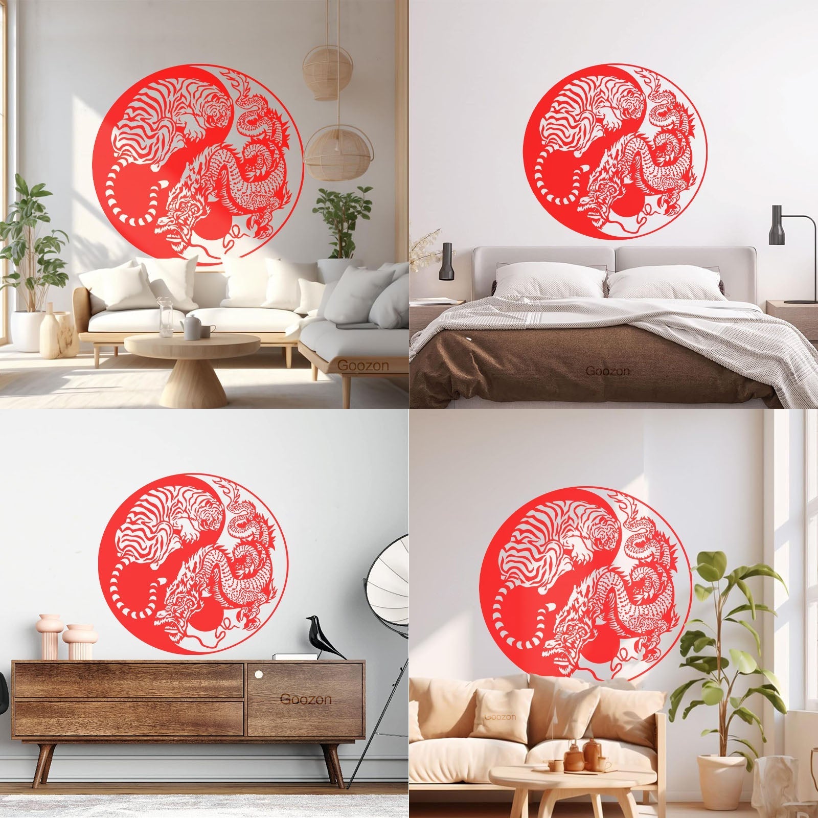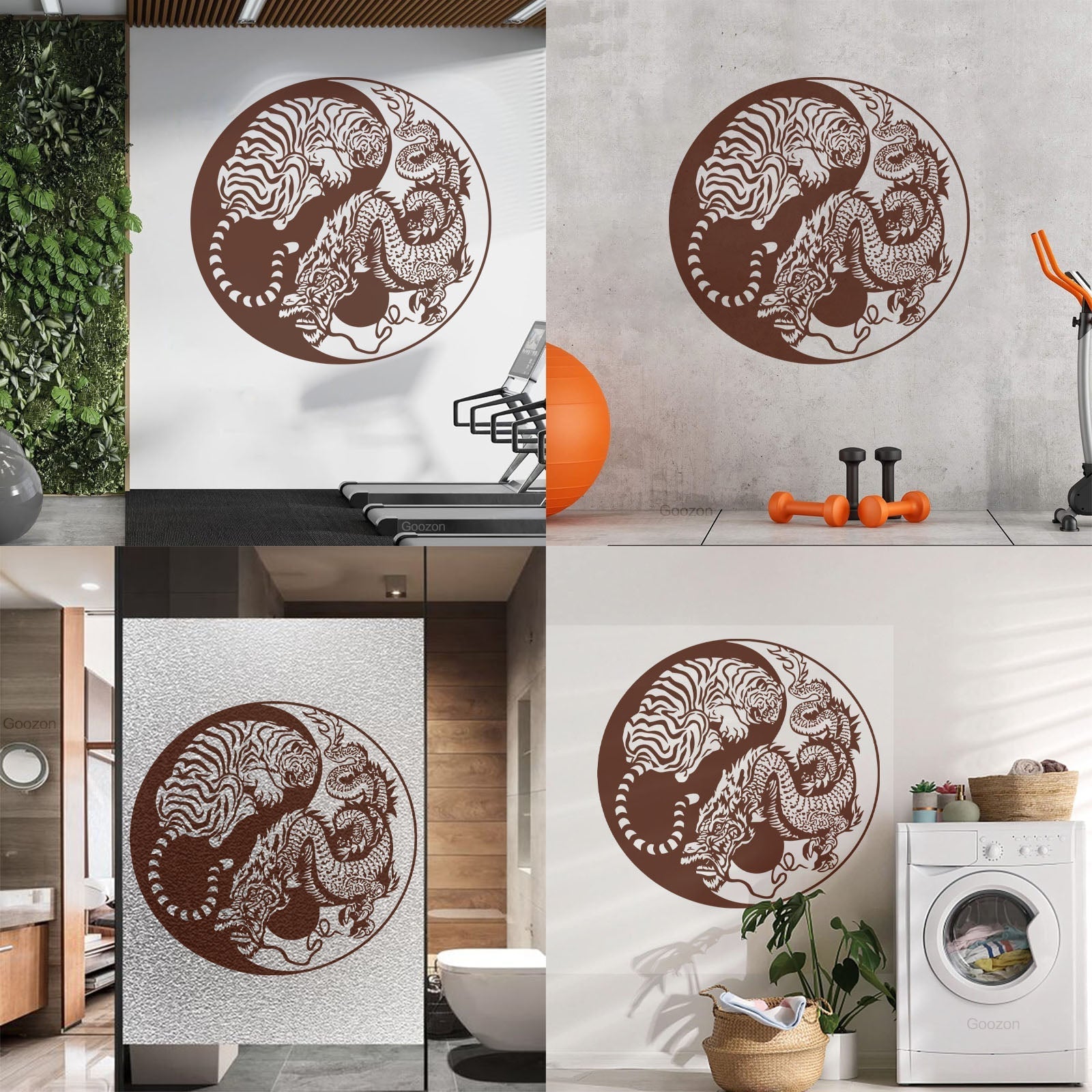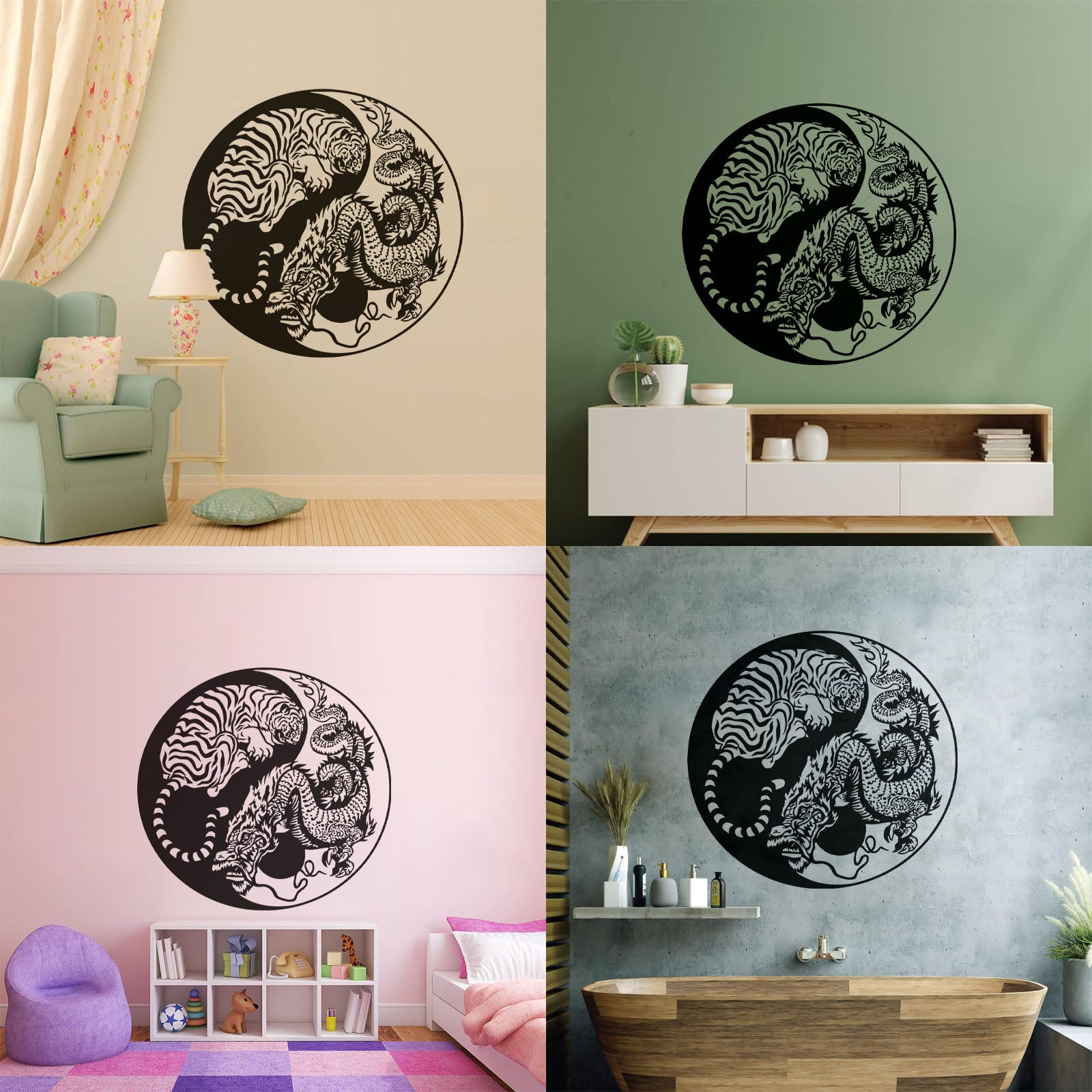 Wall Vinyl Sticker Decor Yin And Yang Dragon And Tiger Fighting Predators Meditation Art Decoration