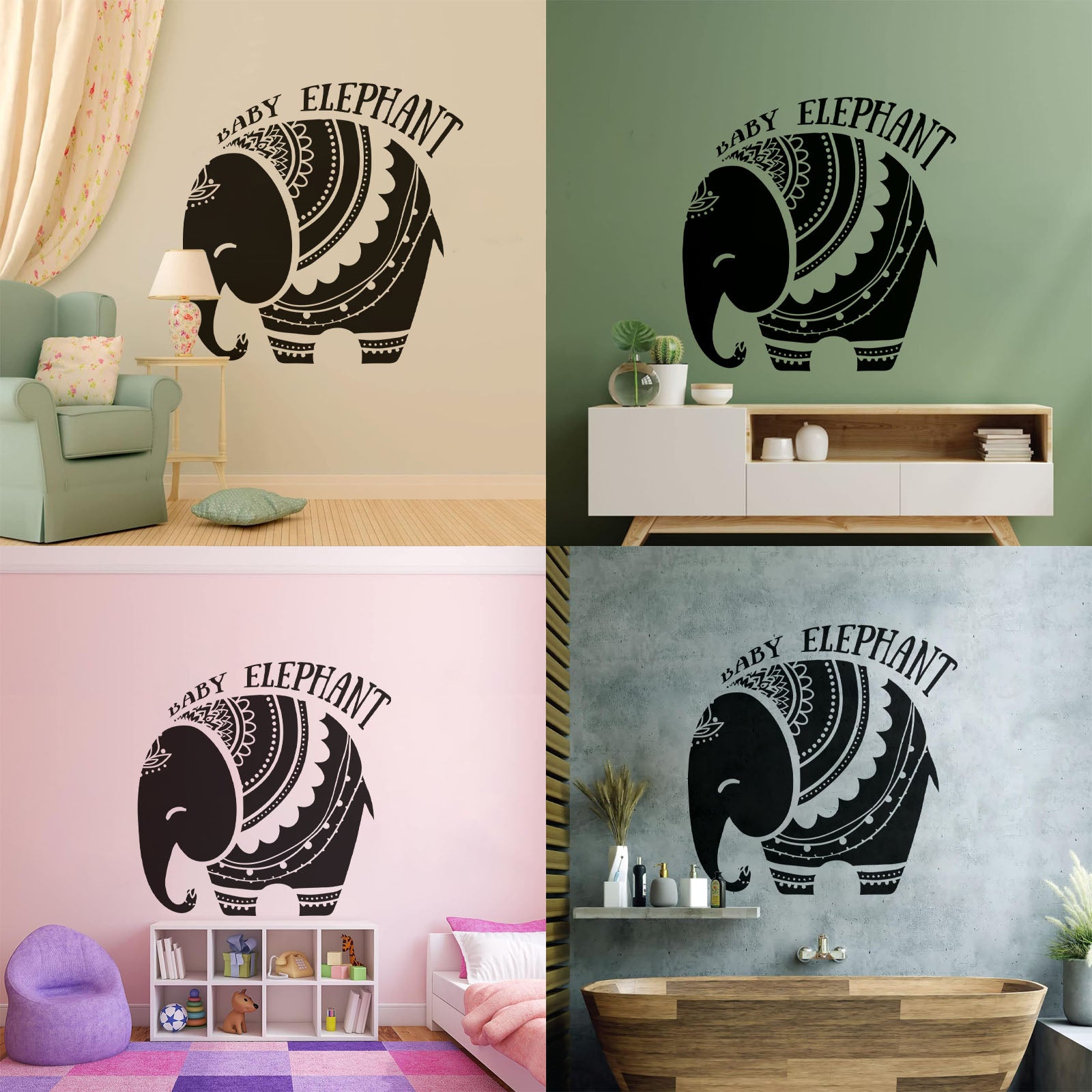 Vinyl Wall Decals Baby Elephant African Style Tattoo Personalized Customization