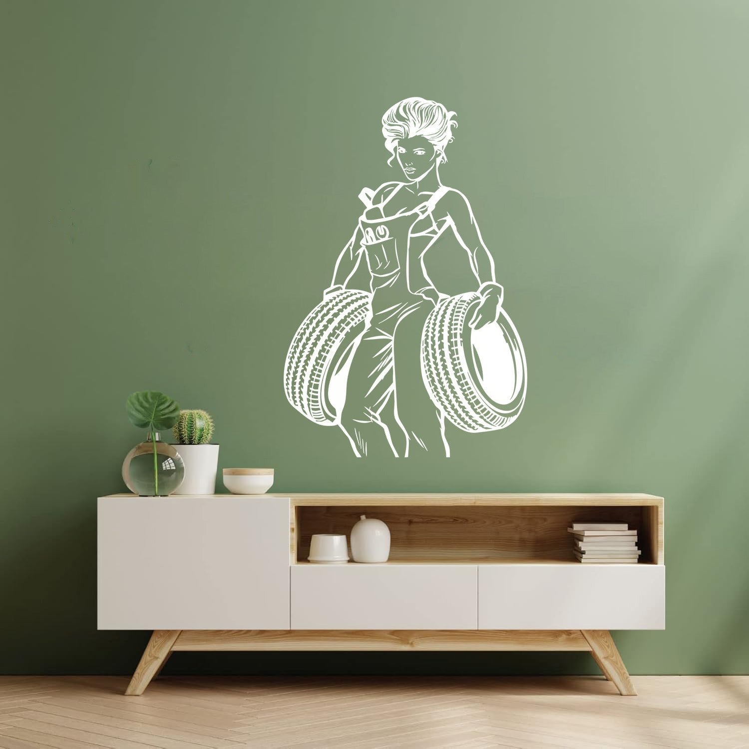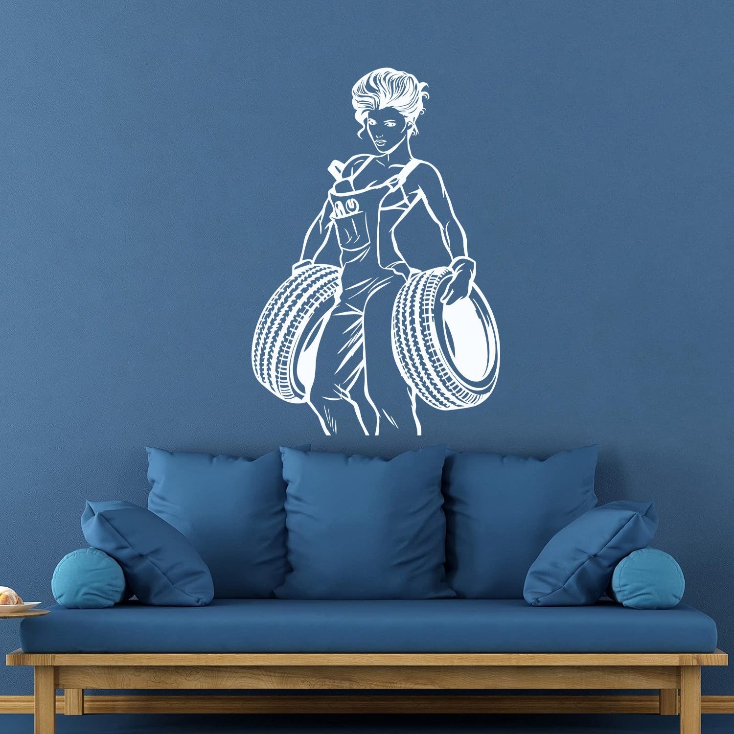 Engraving Decals Appeal Girl Garage Auto Repair Wheels Multi Color Selection