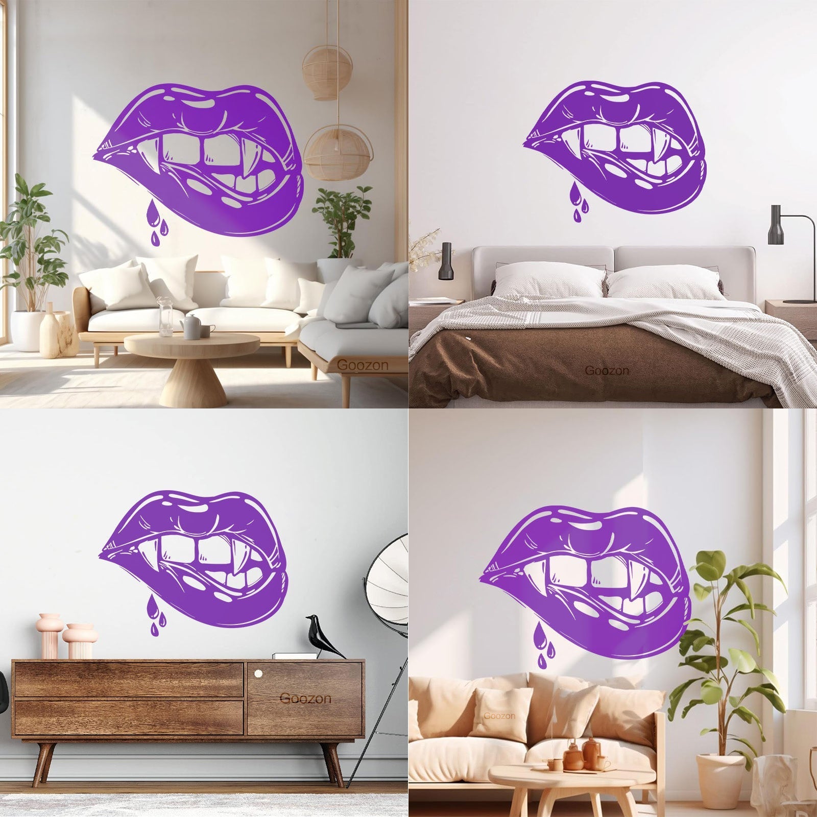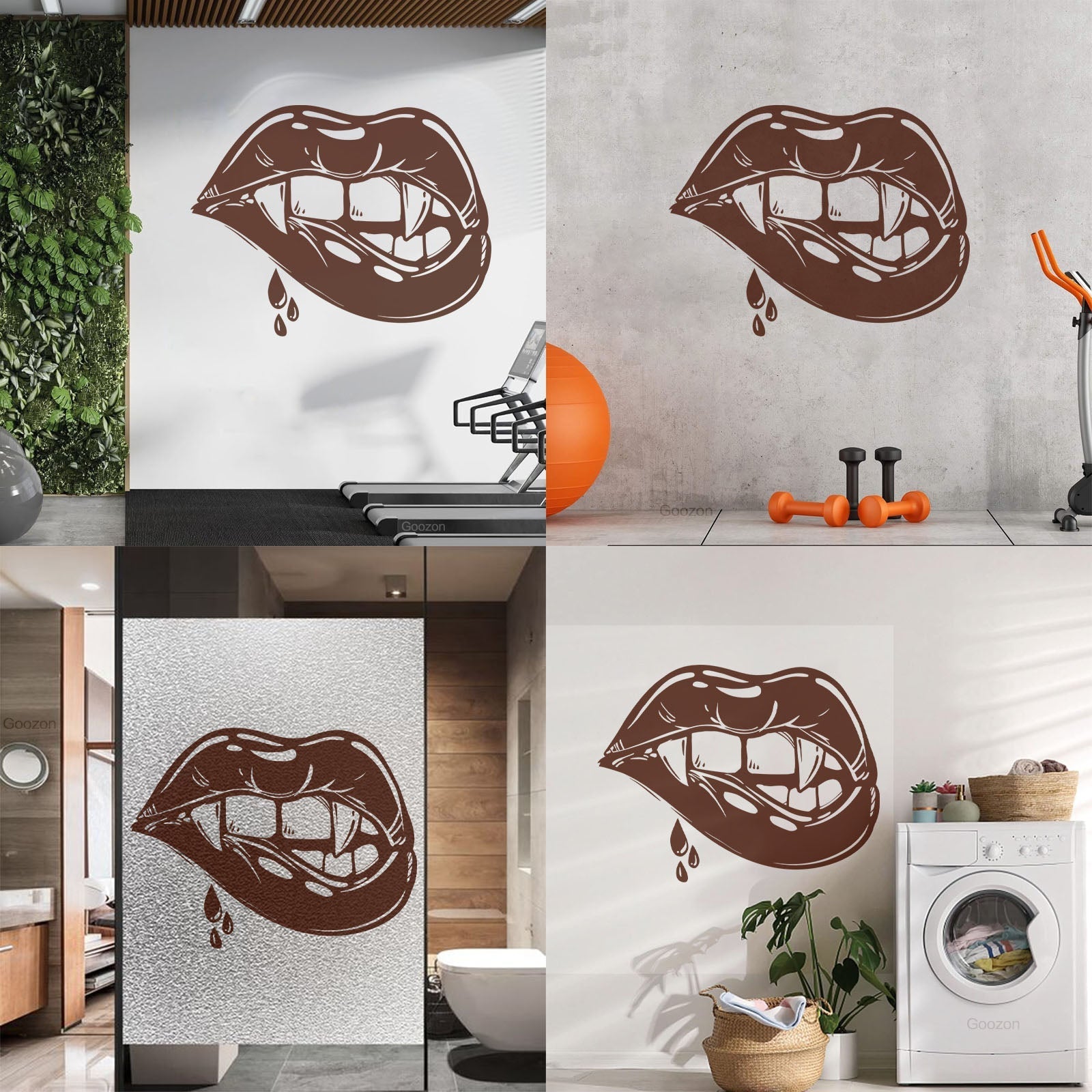 Vinyl Wall Stickers Appeal Lips Vampire Fangs Girl Fantasy Halloween Glass Stickers