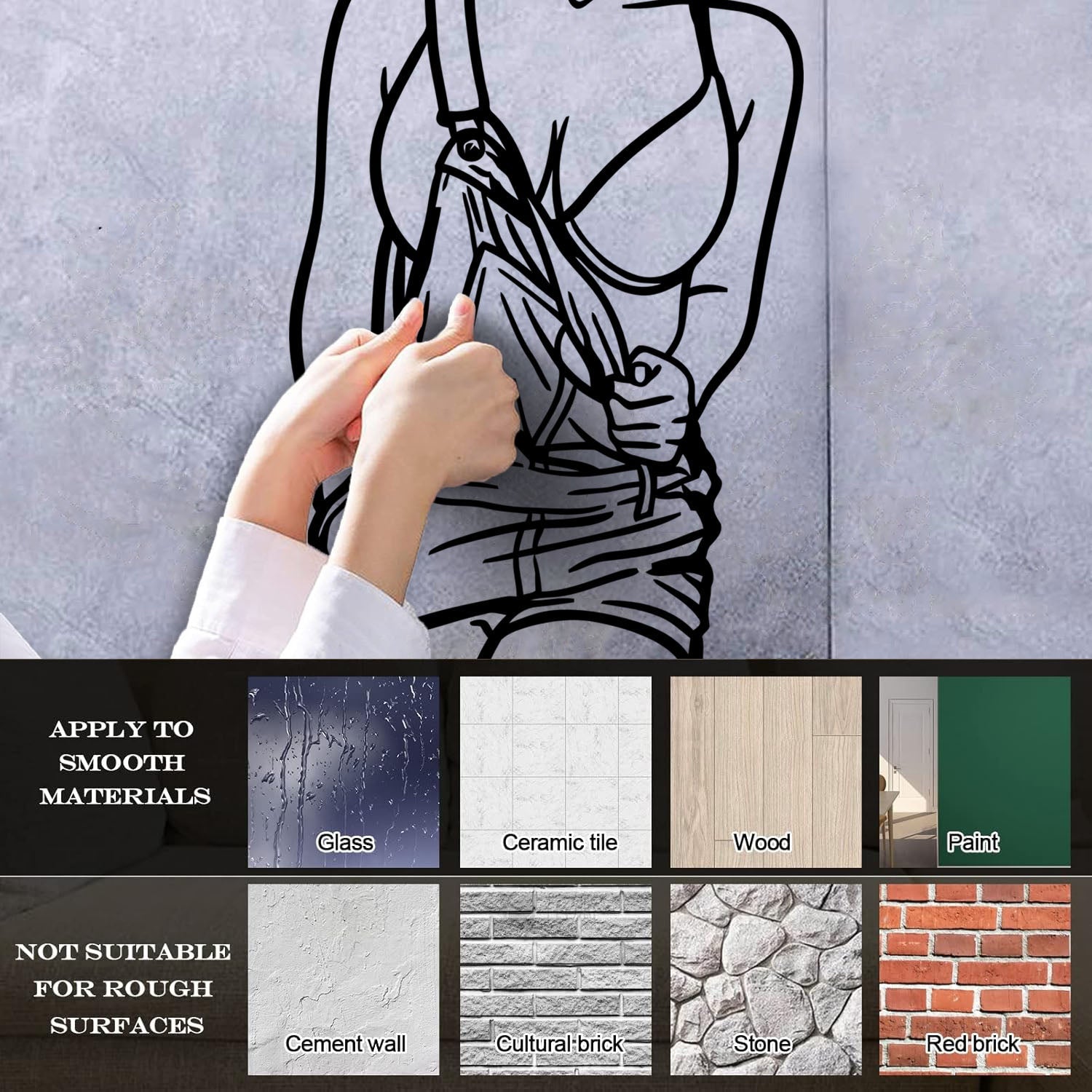 Gently press the decal area to secure it firmly to the wall.