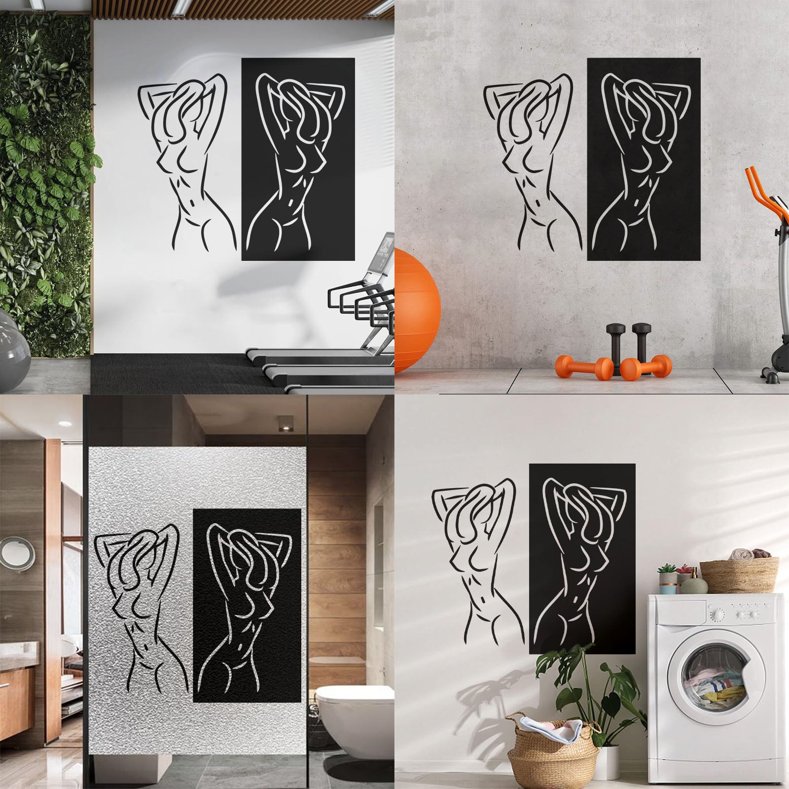 Fine Carving Stickers Appeal Two Girls Silhouette Beautiful Breasts Long Hair Equipped With Transfer Film Kit
