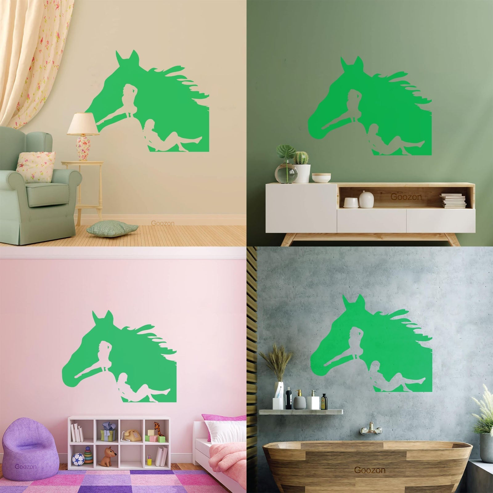 Lettering Decals Horse Head Silhouette Appeal Girls Multi Color Selection
