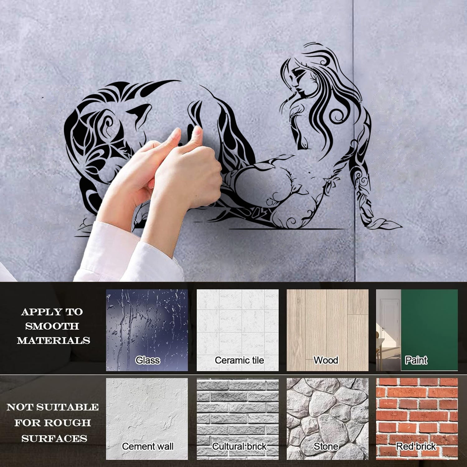 Gently press the decal area to secure it firmly to the wall.