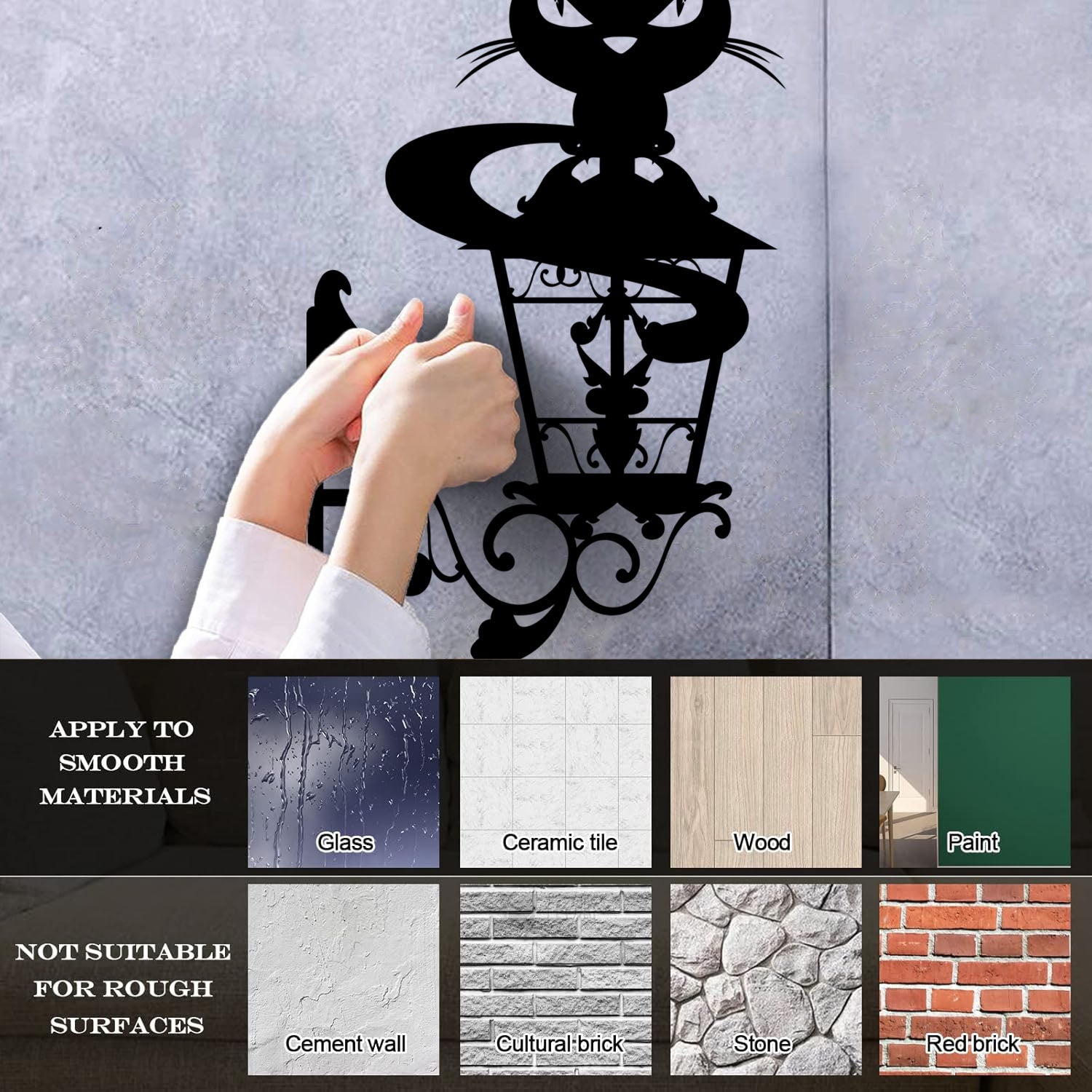 Lettering Decals Cat On Street Lamp Openwork Cunning Eyes Glass Stickers