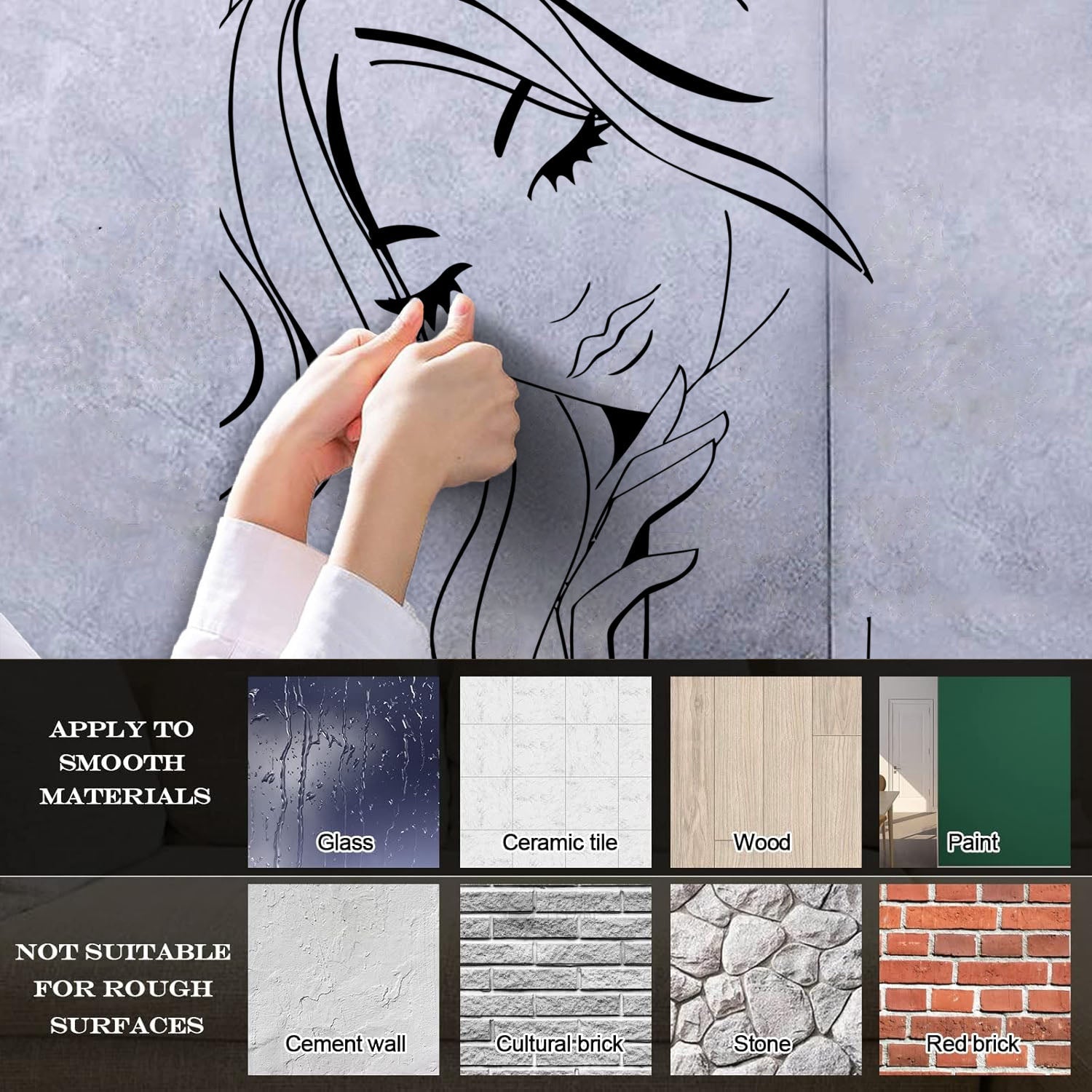 Gently press the decal area to secure it firmly to the wall.