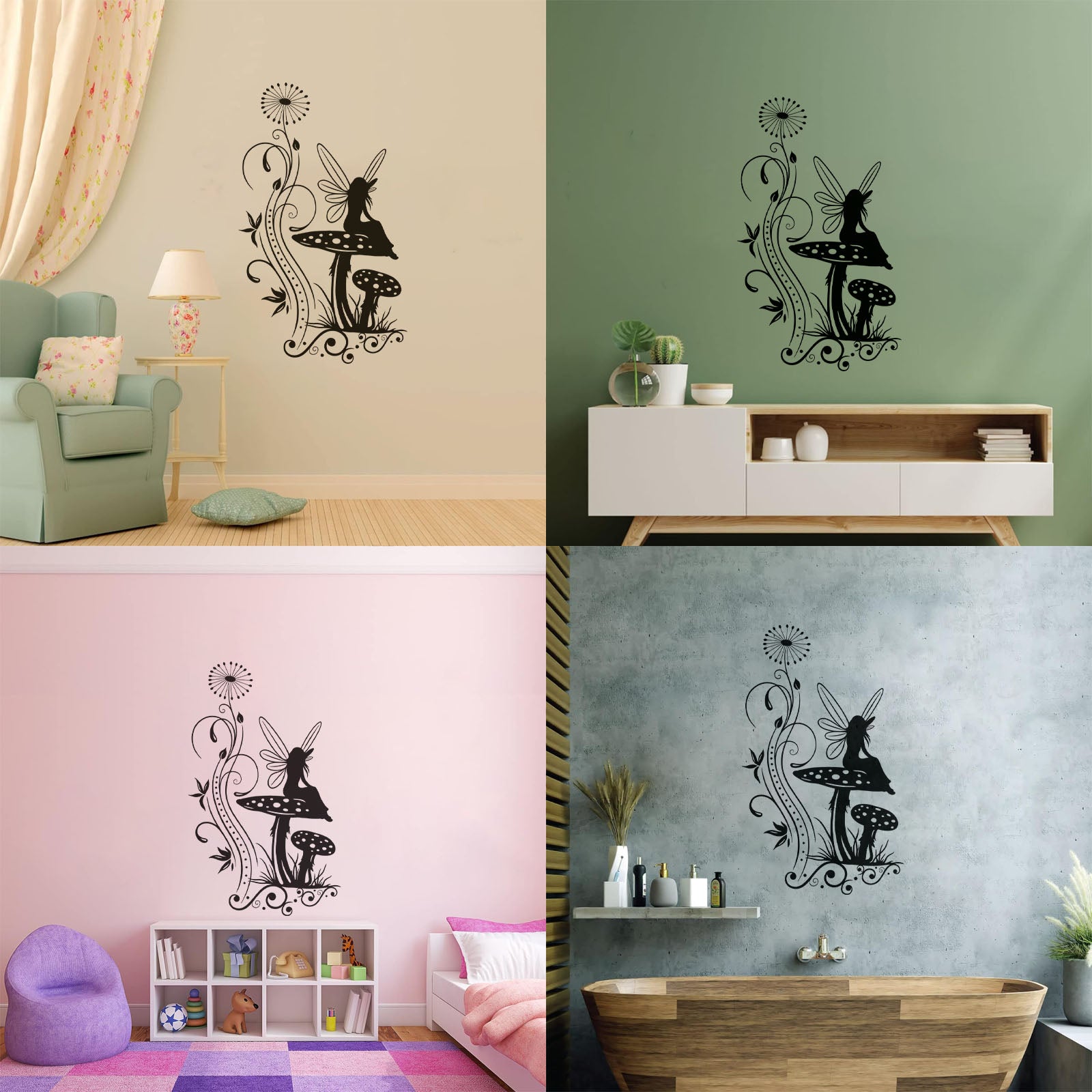 Vinyl Wall Stickers Mushroom Fairy Tale Nursery Fantasy Personalized Customization