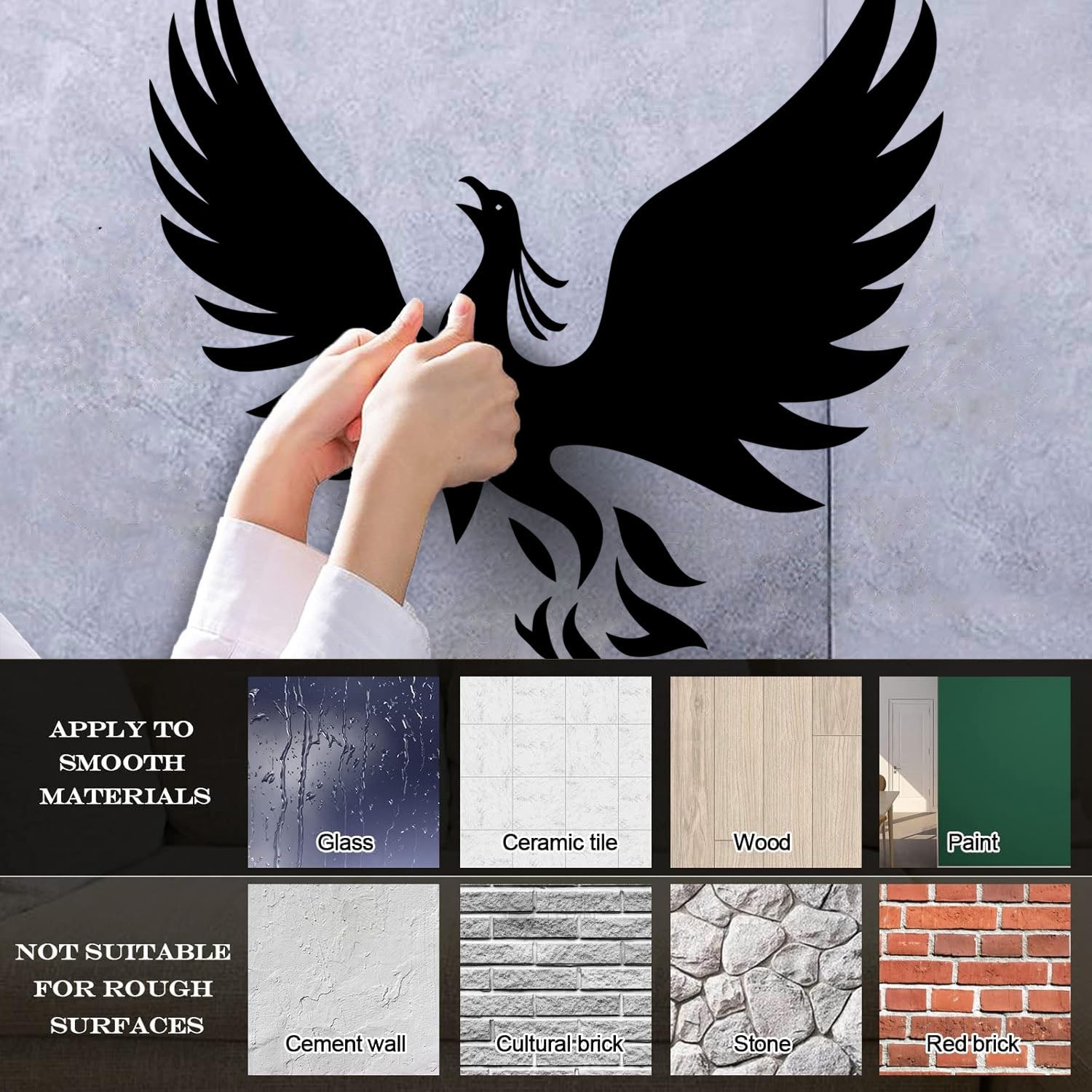 Gently press the decal area to secure it firmly to the wall.