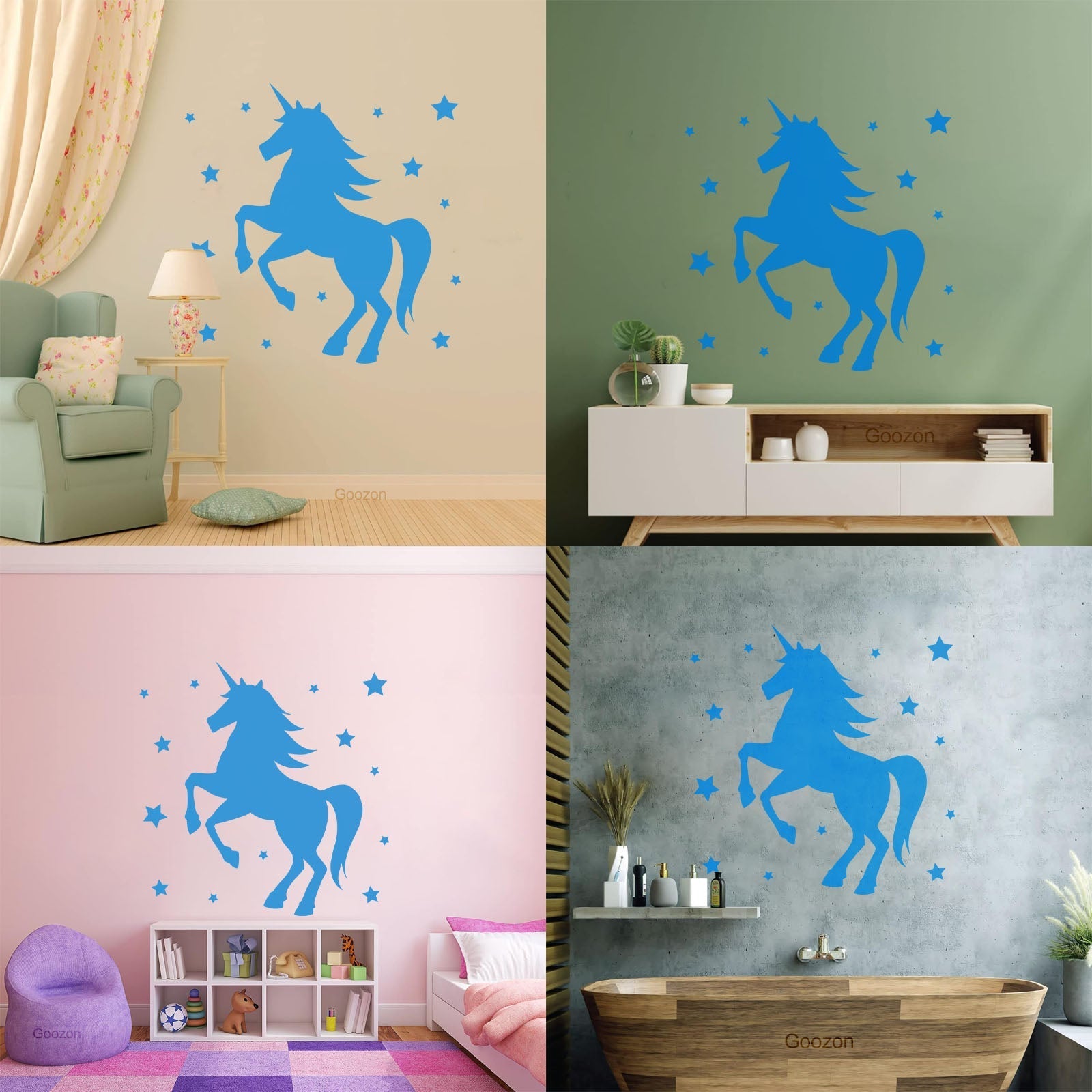 Mural And Wall Vinyl Decal Unicorn Fantasy Animal Kids Stars Bedroom Waterproof